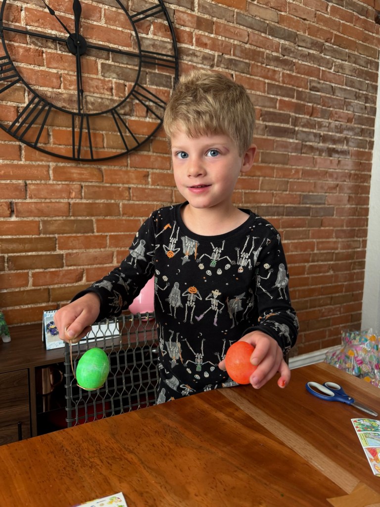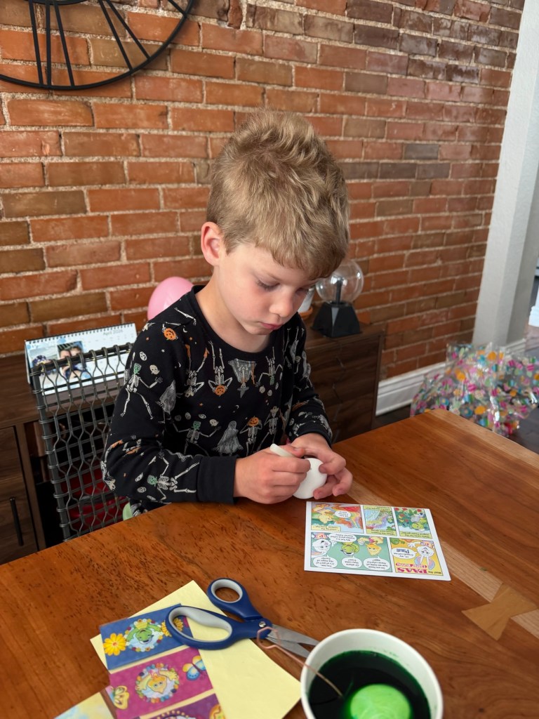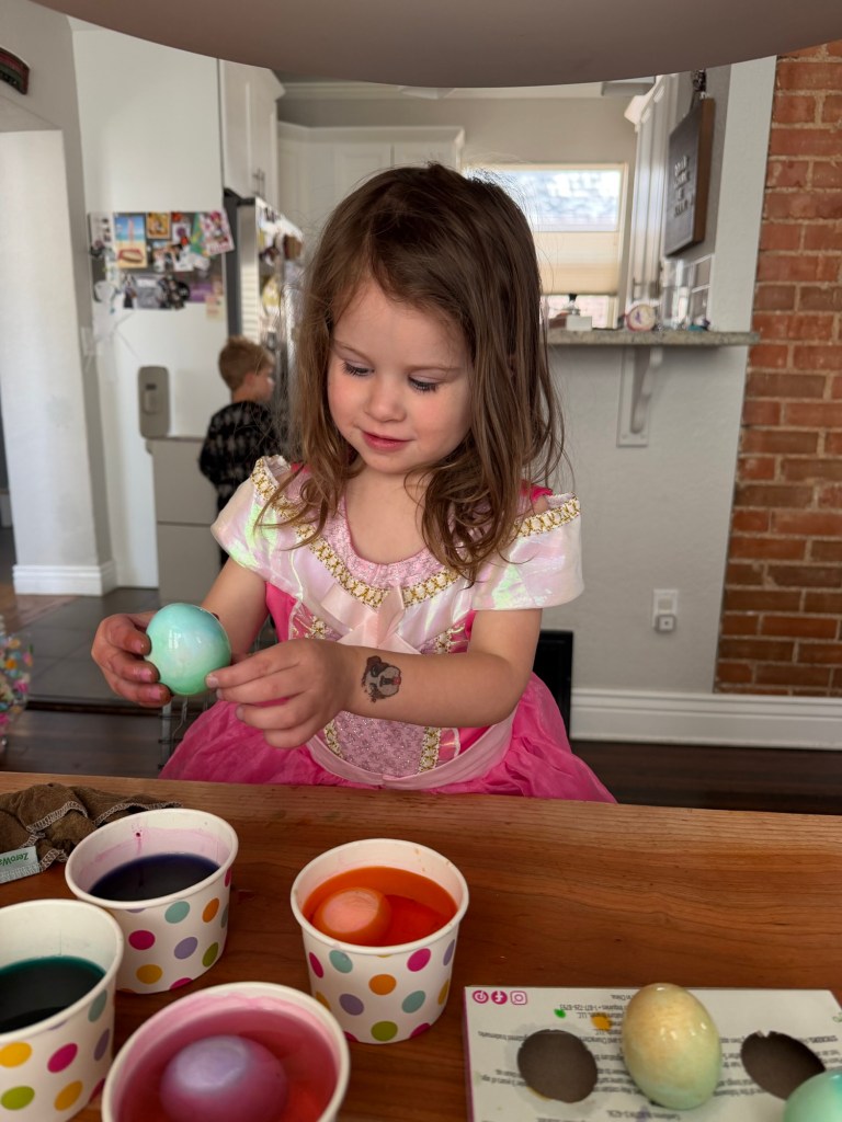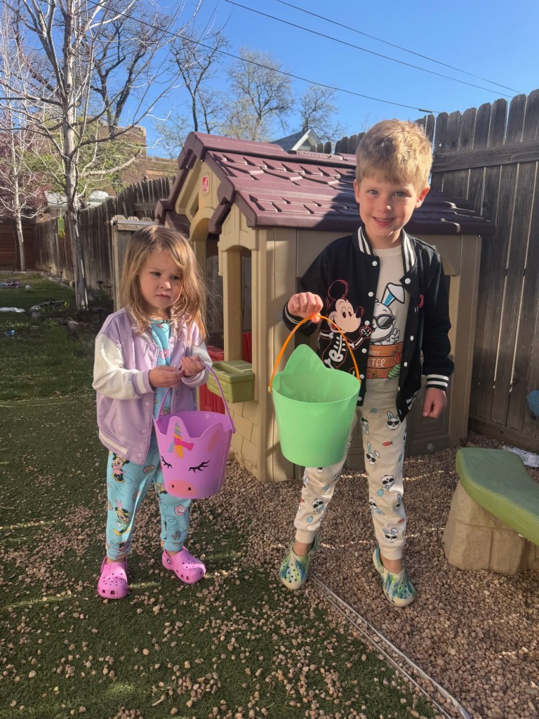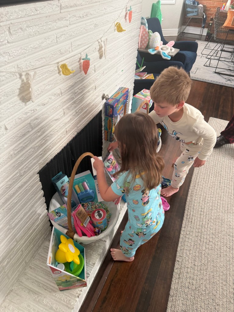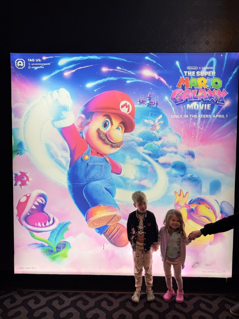Happy Easter! The kids slept in but that gave Joey time to hide eggs in the backyard. We woke them up around 8 and headed downstairs to see their baskets. Lydia always has the best reactions to gifts and she was super excited for it all! Dempsey is excited in his own low-key way, but I think he really liked his chainsaw bubble maker, magic kit and 3D doodle pen case 😀 I made bunny butt pancakes for breakfast and then we made the spontaneous decision to go see The Super Mario Galaxy Movie. I thought it was just fine, neither offensively bad nor amazingly good. The kids had fun!