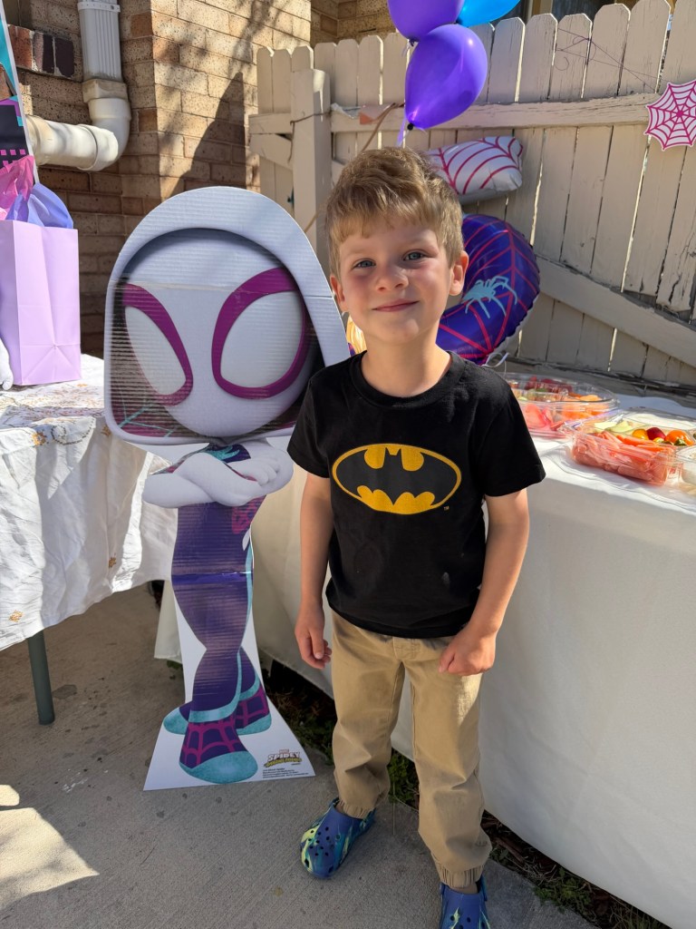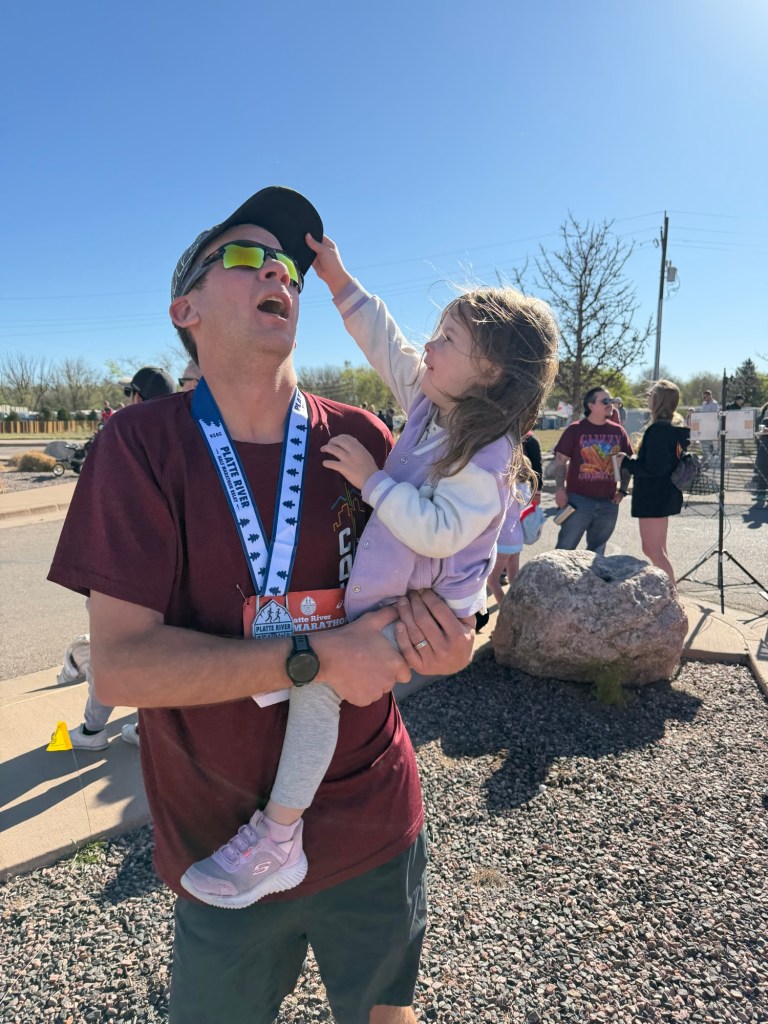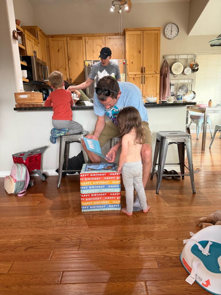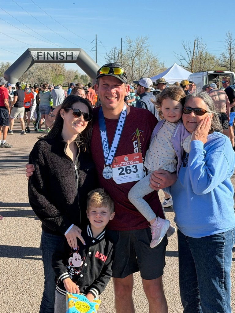 Chad and Lori picked Joey up at 6 AM to get him to the start line for his half marathon and the kids and I made our way over a bit later to see him at the finish. They were both cheering him on and got high-fives as he ran by. Especially cute to see Dempsey so amped because he’s much less excitable than his sister 🥹😍 We grabbed coffee at Metropolis afterward and ran into a classmate of Dempsey’s that we had also seen at the birthday party 😂 The rest of the day was very chill because we were all tired. I made salads and we played a little here, watched a little TV there until it was time to pack up and head to my parents’ to celebrate Joey’s birthday one last time. My mom had such a good spread of food but most importantly, red velvet cake. How’s it so good????