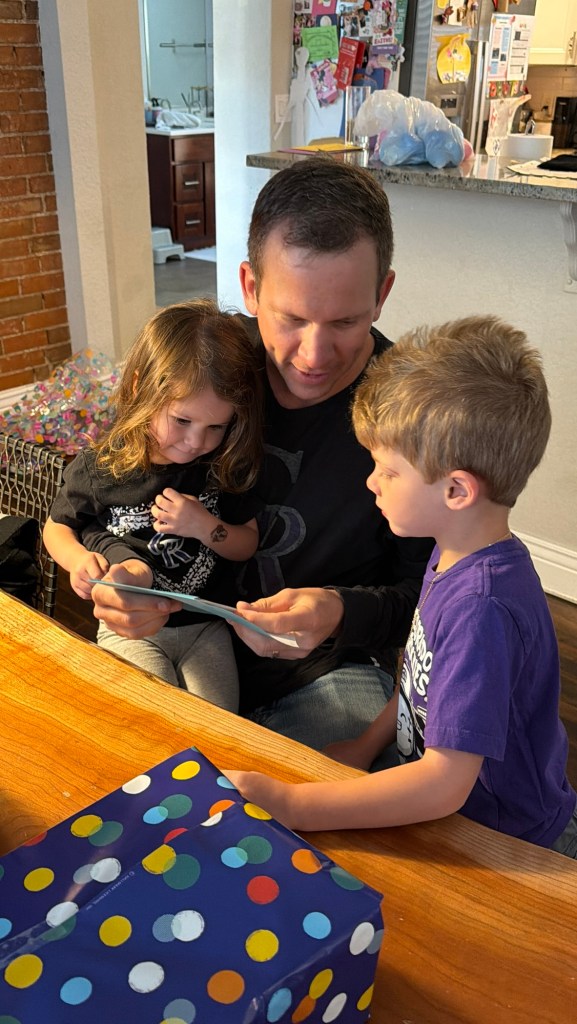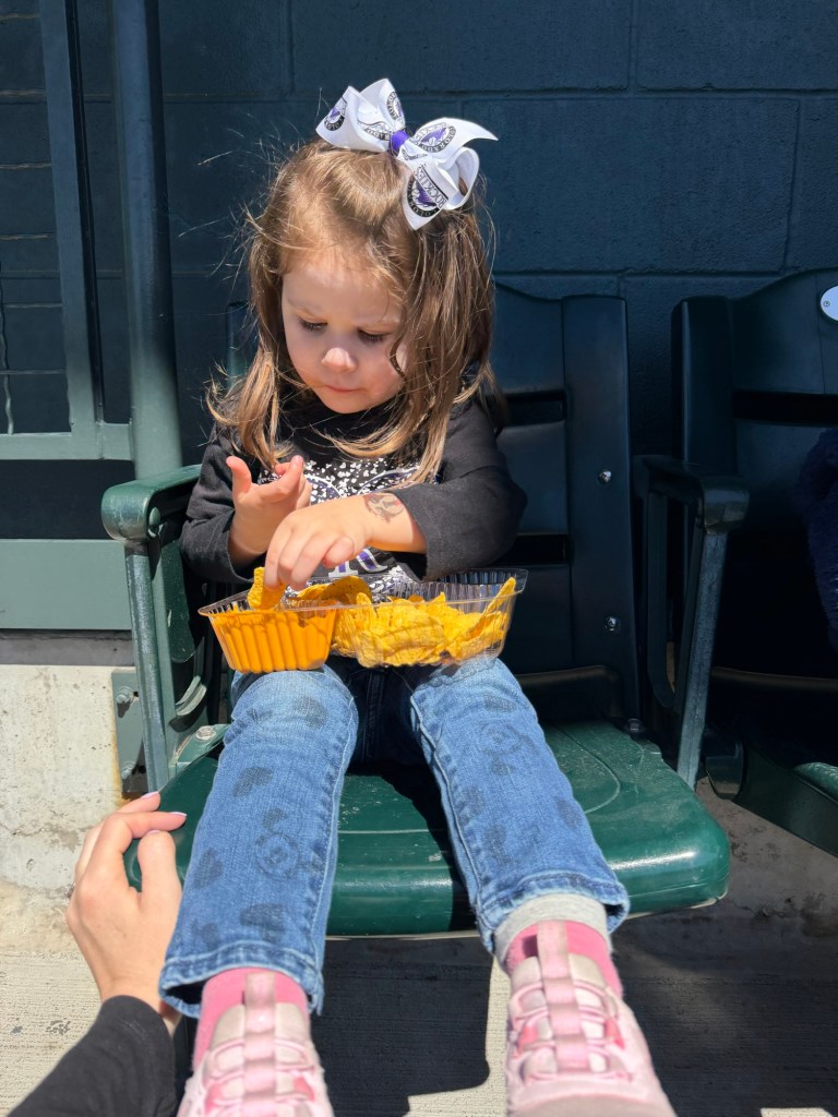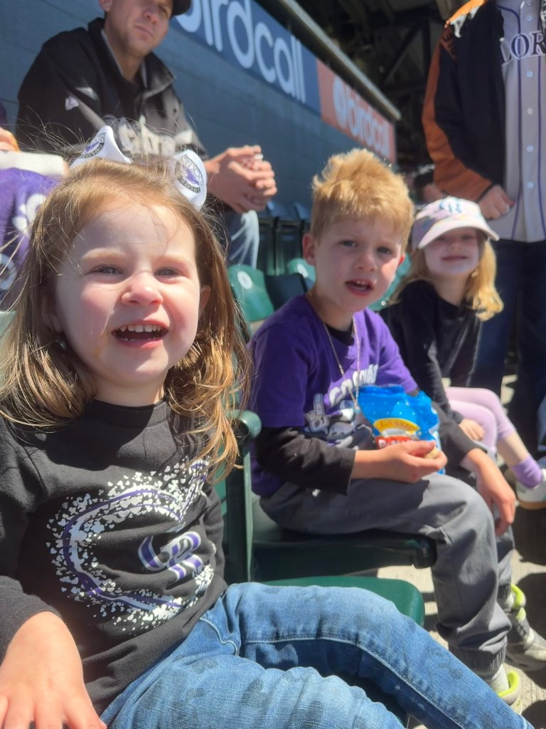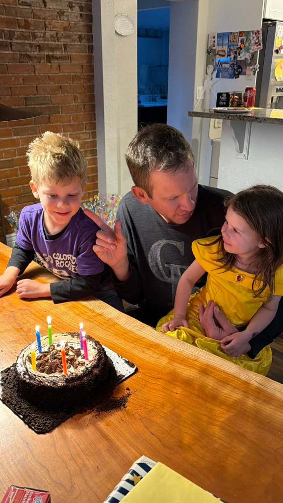 Just makes sense when Opening Day also falls on Joey’s birthday. The Rockies are as committed to him and he is to them 😉 The kids were so excited to wish (and sing) him a Happy Birthday on Friday morning and then we did presents before Dempsey headed to school and Joey and Lydia headed to the office. I got some work done at home and quickly exploded my jar of sourdough starter before everyone was back home to get ready for the game. We layered up and packed a blanket and handwarmers but sitting in the sun got SO HOT. Poor Dempsey was melting and hiding under Joey’s hat the whole time, but he perked up for Dippin’ Dots 😂 We left after the 7th Inning Stretch and that little lady fell asleep during our ten minute drive home, so she and I got to hang out in the car for a bit while she caught some Zs. At 6, Steve, Lorna and our pizza showed up to celebrate Joey’s birthday. Blue Pan is just the best and we had a really nice evening.