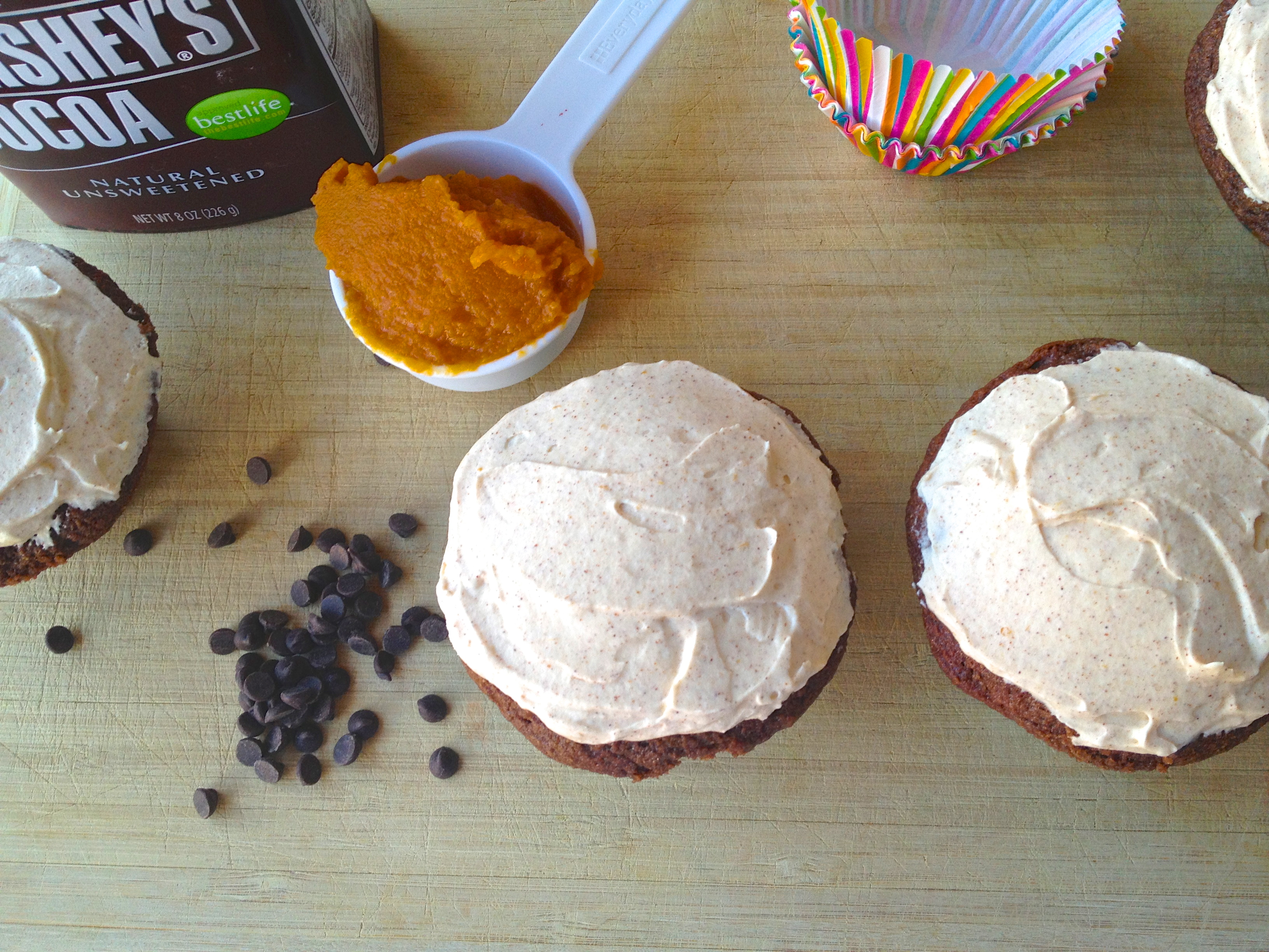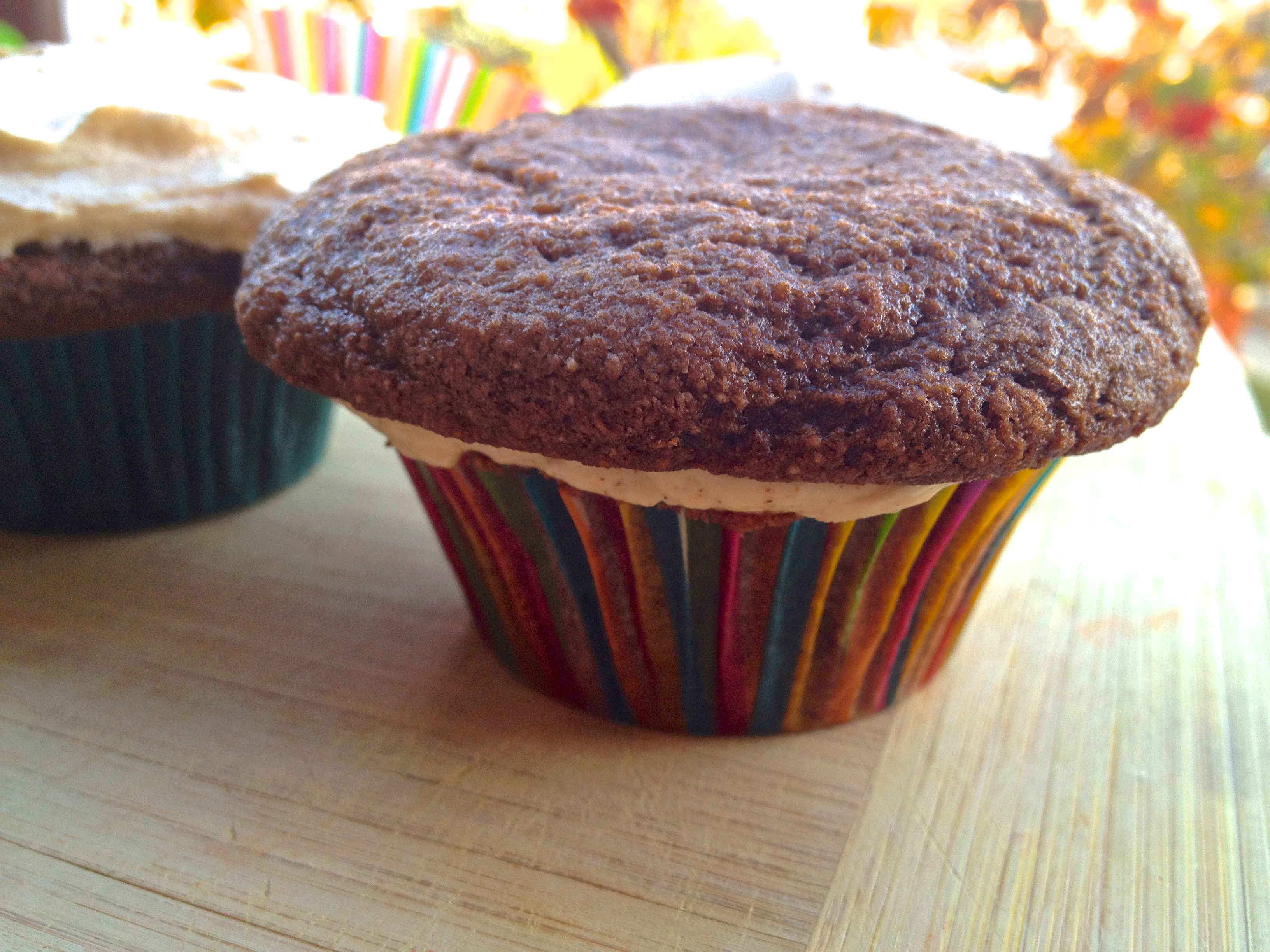 Double Chocolate Muffins with Pumpkin Cream Cheese Frosting