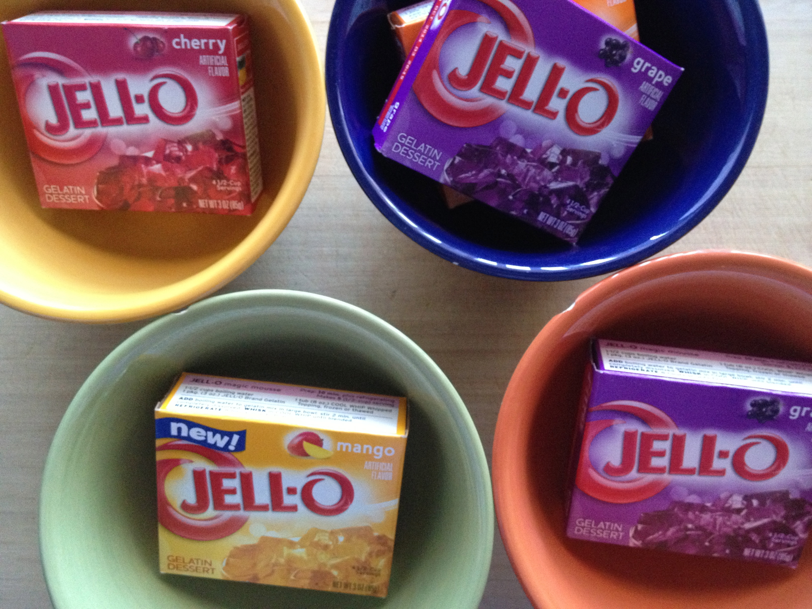 • 1 3-oz. box of Jell-O per team color (4 boxes total)