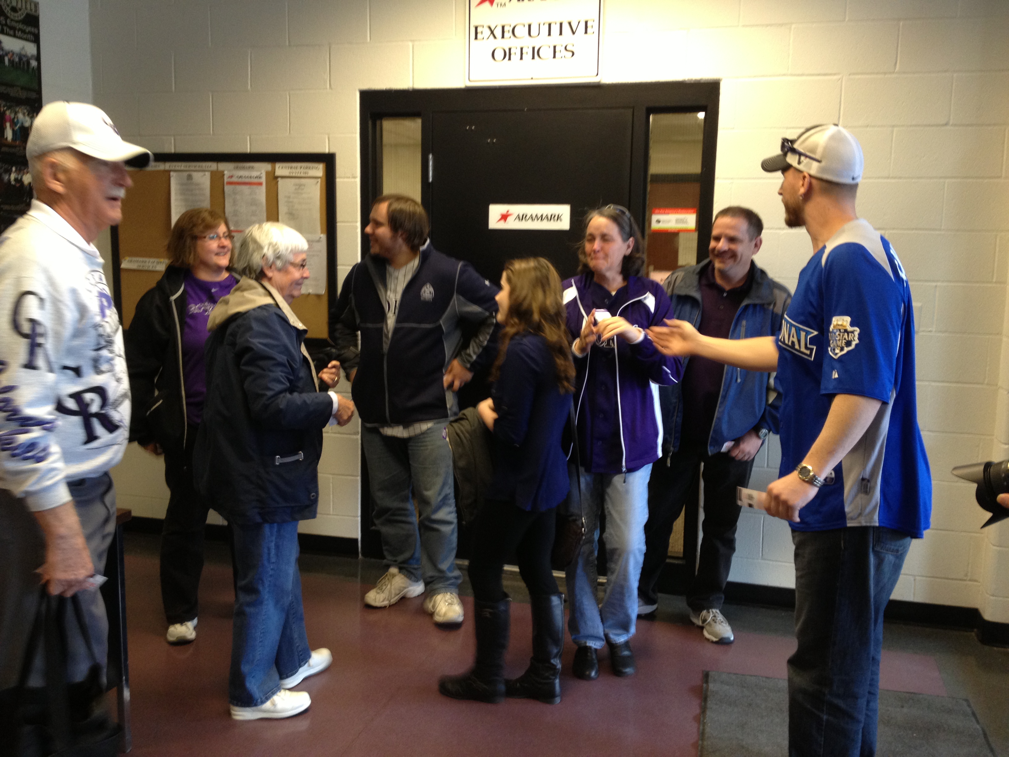 Then we showed up at the Rockies game and escorted her to our private warning track-level suite! There was definitely some many tears of happiness. And it just kept getting better, as about 20 more people arrived.