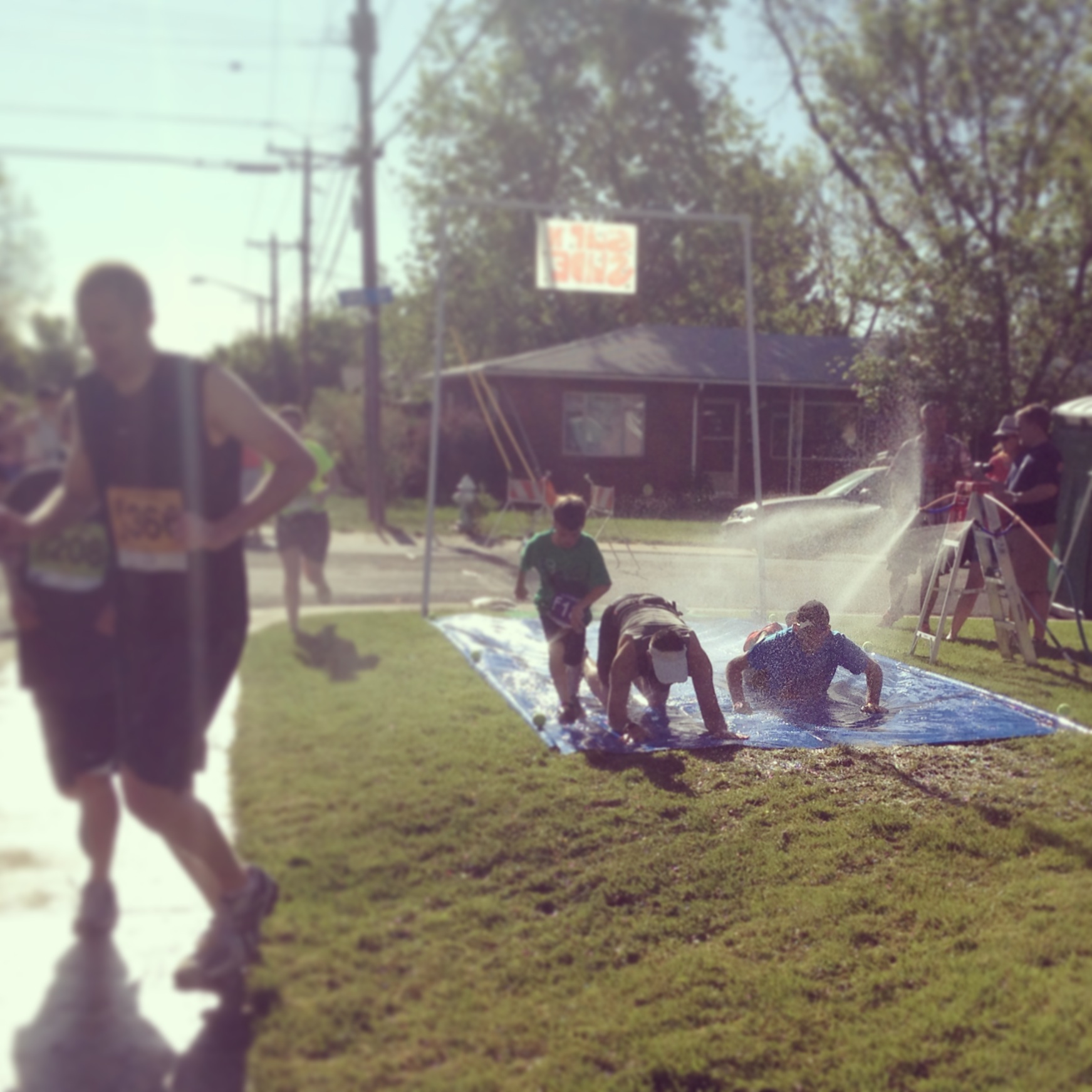 Why Joey insists on doing this slip and slide during the race is beyond me. He just ends up complaining about how he’s soaking wet and out of breath afterwards.