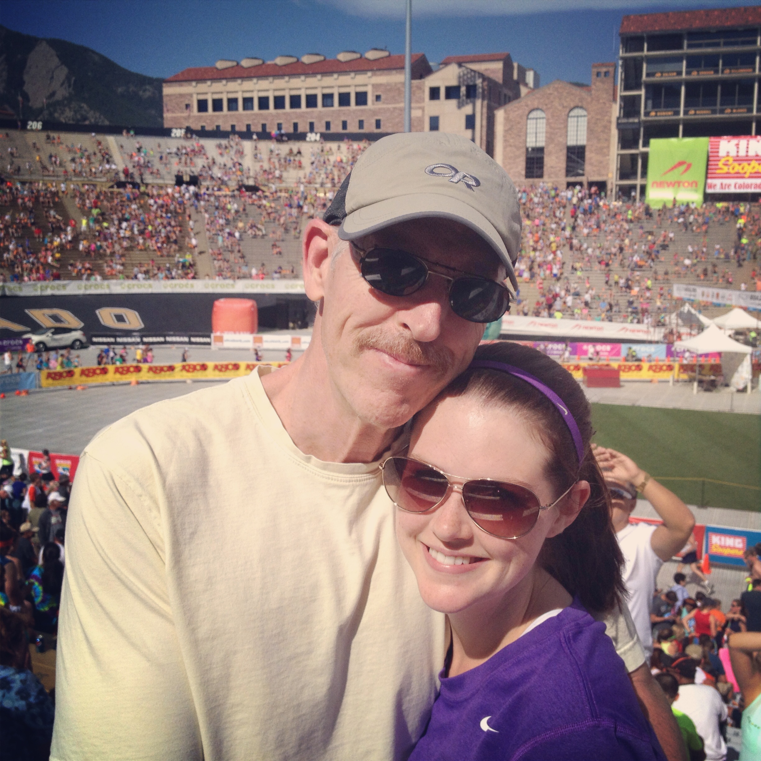 My parents were nice enough to come down to crazy crowded Boulder just to watch us finish. Thanks, Mom and Dad!