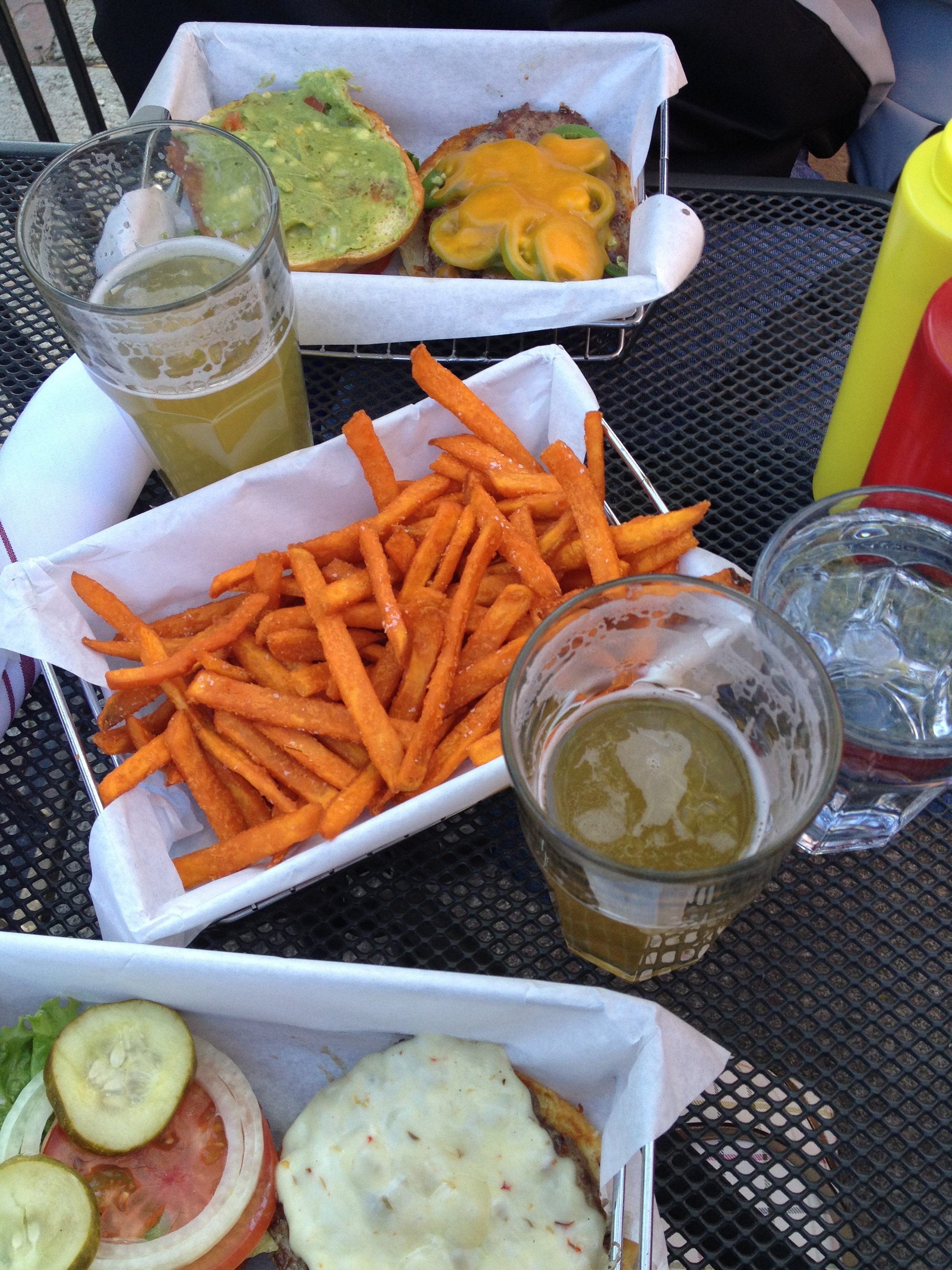 We had the patio to ourselves for a quick pre-Rockies game dinner of beer, burgers and some perfectly crispy sweet potato fries.