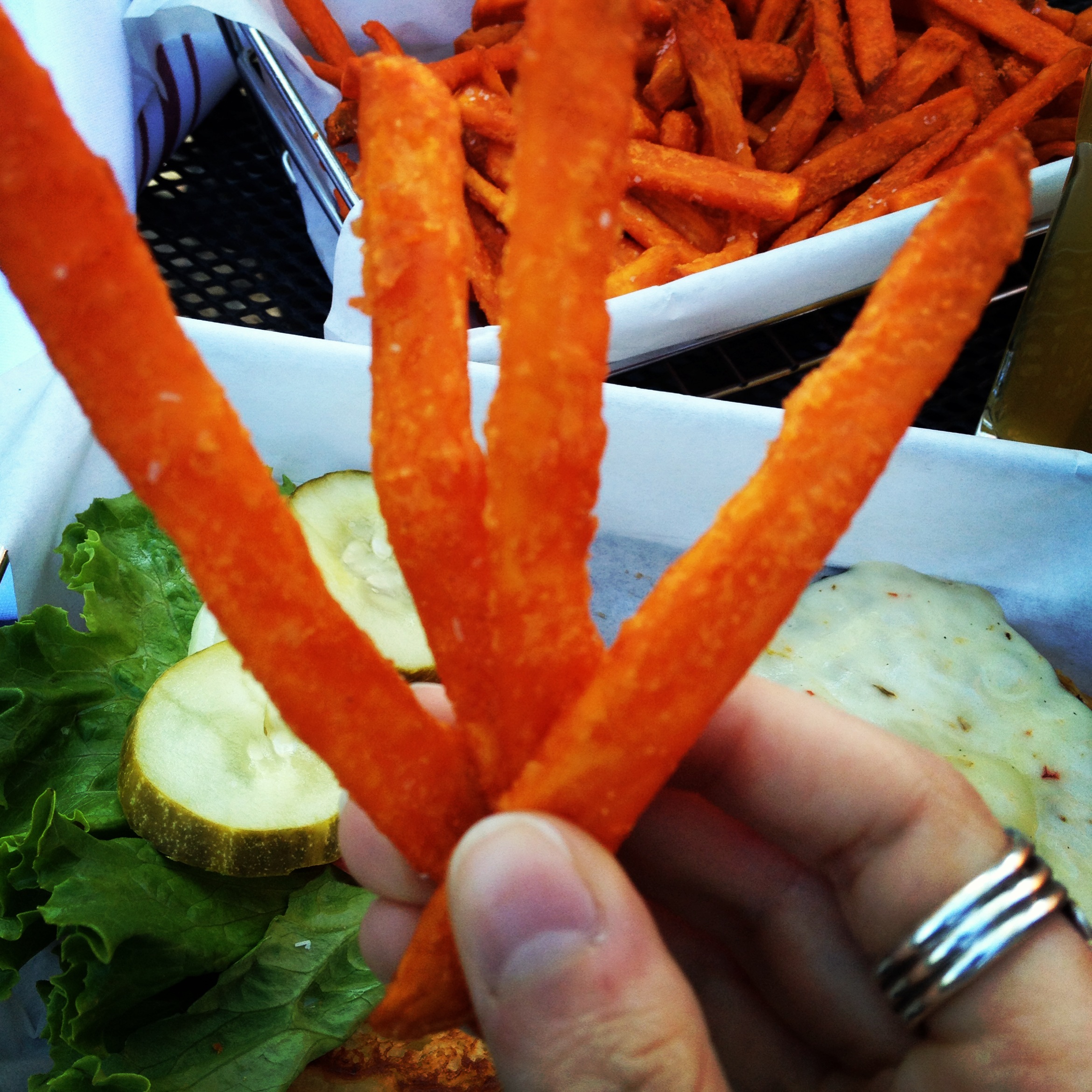 1. Ok, so I’m just catching up…I know, I know…over a MONTH behind! I’m terrible! But I just HAD to comment because those look like the best frickin sweet potato fries EVER! I’ve yet to find a place around here that serves crispy ones…they’re always soft and limp! Lol