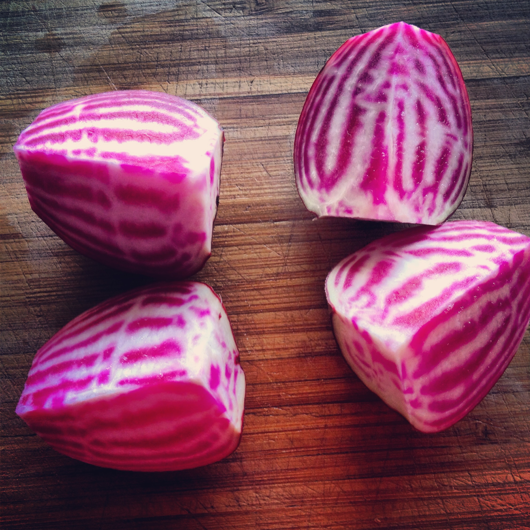 We used up the beets in these Berkeley Veggie Burgers and let’s just say our version didn’t look exactly like Cooking Light’s. But since when do homemade veggie burgers hold together like they’re supposed to? Instead of looking at messy burgers, let’s look at the inside of this amazing beet, shall we? Too cool. Also too cool? The grater attachment on my food processor. I love a good opportunity to use that thing. I half expected these “burgers” to turn out horribly but we were both surprised by how good they were. A definite re-make meal.