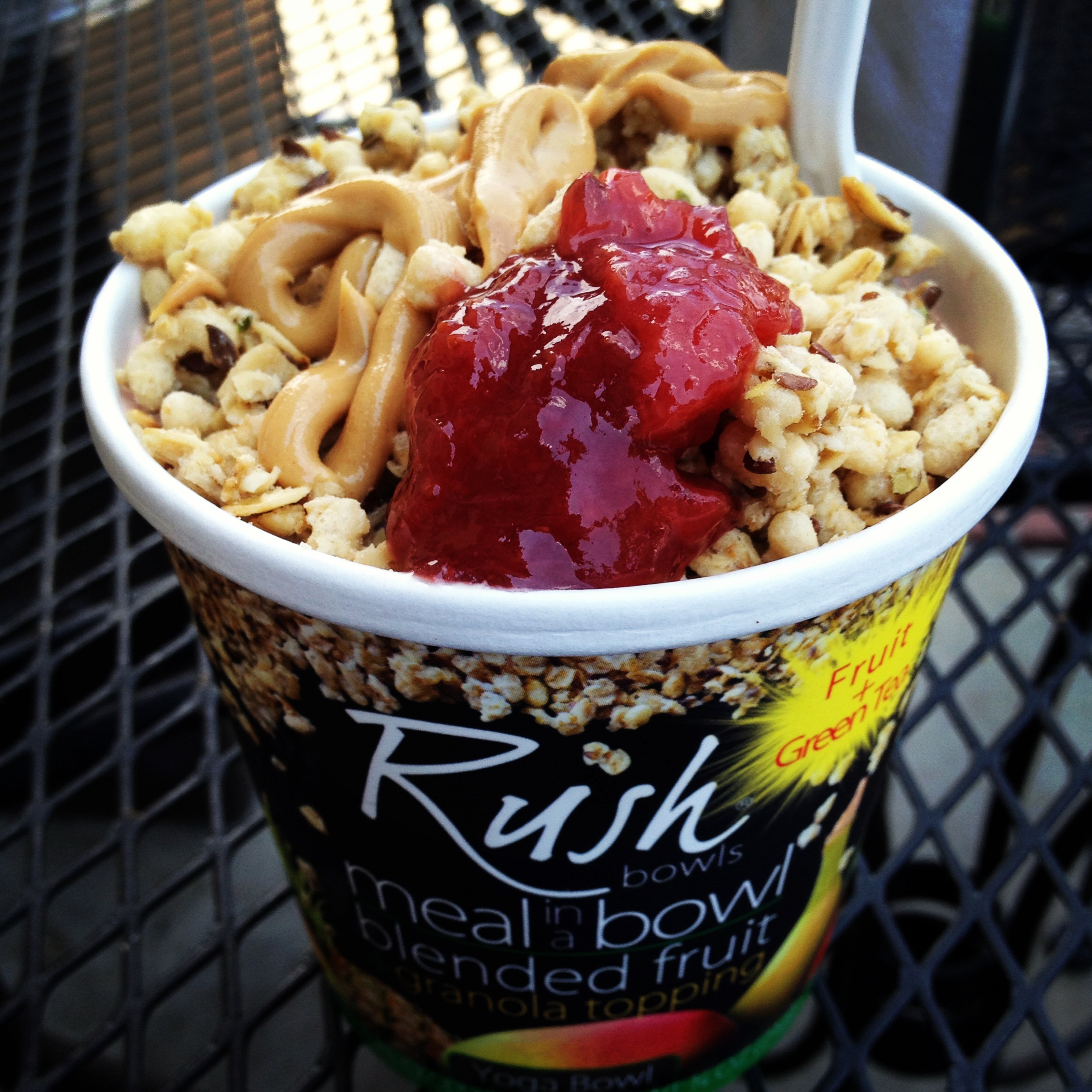 I treated myself to Rush once we got back down the mountain. I know that place is calling these smoothies, topped with granola and honey (or PB&J in my case), a “meal bowl,” but I’m pretty sure blending some fruit into frozen yogurt and topping it with peanut butter makes this dessert. I ate it for lunch anyways.