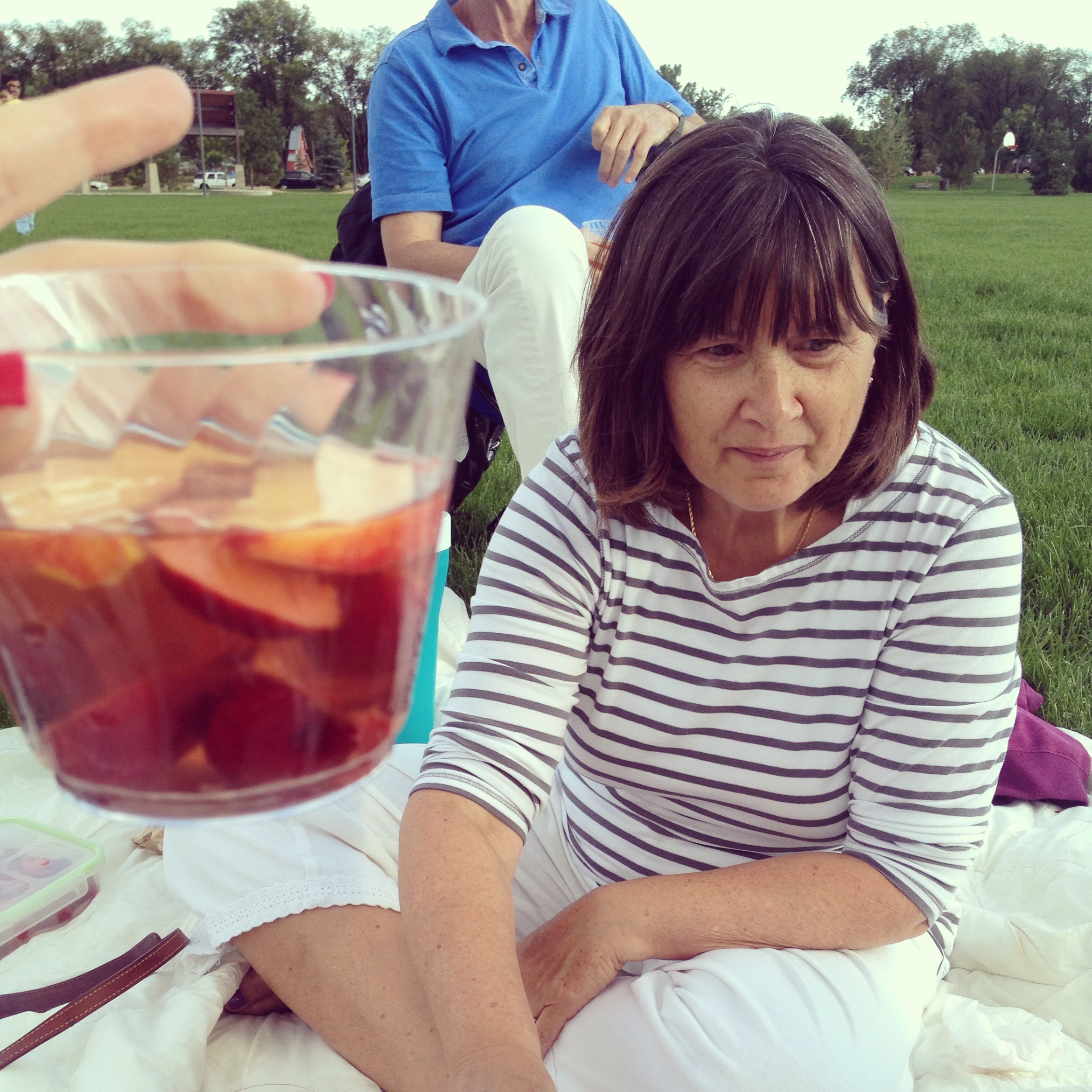 My mom and my sister grabbed brisket sandwiches and some amazingly delicious French fries — thick cut and salty, just how I like em — at the BBQ truck and then we all camped out on our picnic blanket with some homemade sangria my mom brought with her. P.S. Can you see my mom’s new diamond earrings? She had one fall out of her ear earlier this year, so my dad took her for a replacement and white gold upgrade. Way to go, Dad! I swear he was also at the movie, despite the lack of evidence.