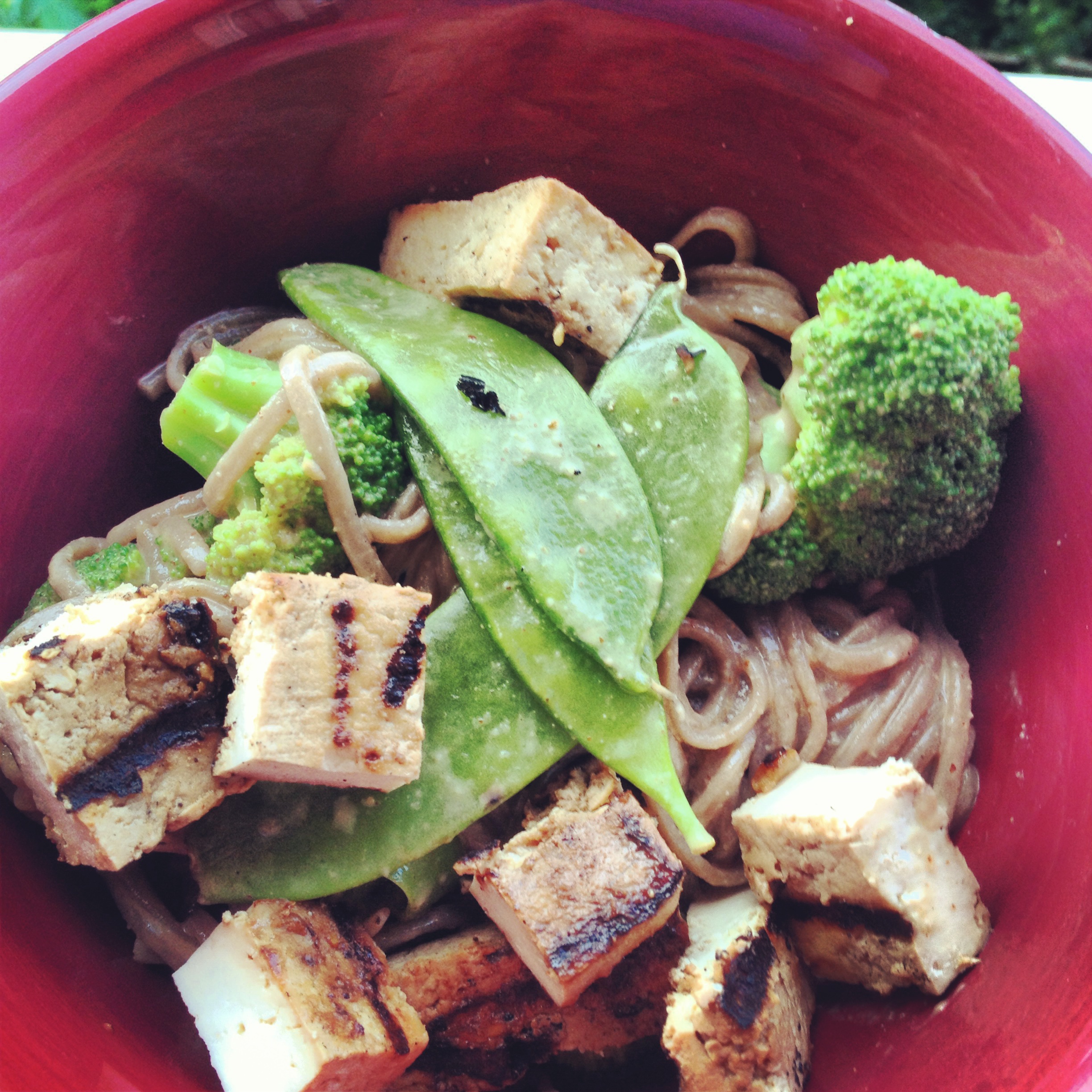Oh, right, the broccoli! I cut it up and tossed it into this Sesame Soba Noodle dish, along with more snow peas and some leftover tofu from the banh mi sandwiches. We’ve made this once before and it’s really simple and really tasty — anything with a almond butter sauce can’t be bad — but the real story was the florescent green caterpillar that was eating its way through this head of broccoli when we picked it up from the farm. It was gross and cute at the same time. In other news, would it be weird if I asked Hannah to let me hold a bouquet of broccoli at her wedding?
