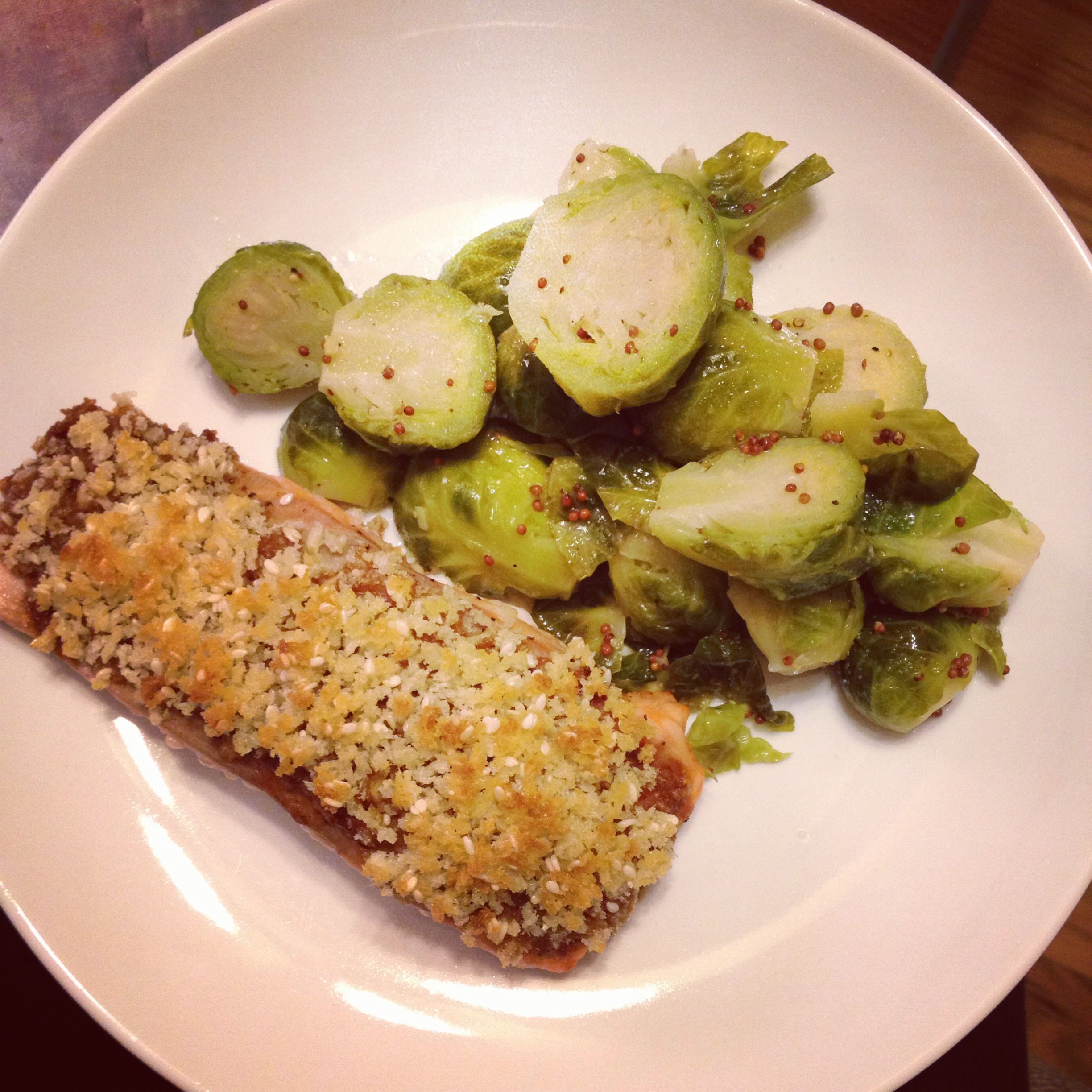 Plus a fancy dinner. I always forget how quick, easy and delicious salmon is. I never forget how expensive it is, however. We tried this recipe and it is a definite keeper. I could’ve eaten 5 more pieces. And then been broke for the rest of the year. Then to top this wild and crazy night off, I fell asleep on the couch at 10 PM… Joey pointed out that I did drink an entire bottle of wine 😛 P.S. Who else is super excited for the return of brussel sprouts?! Oh, just me on that one?