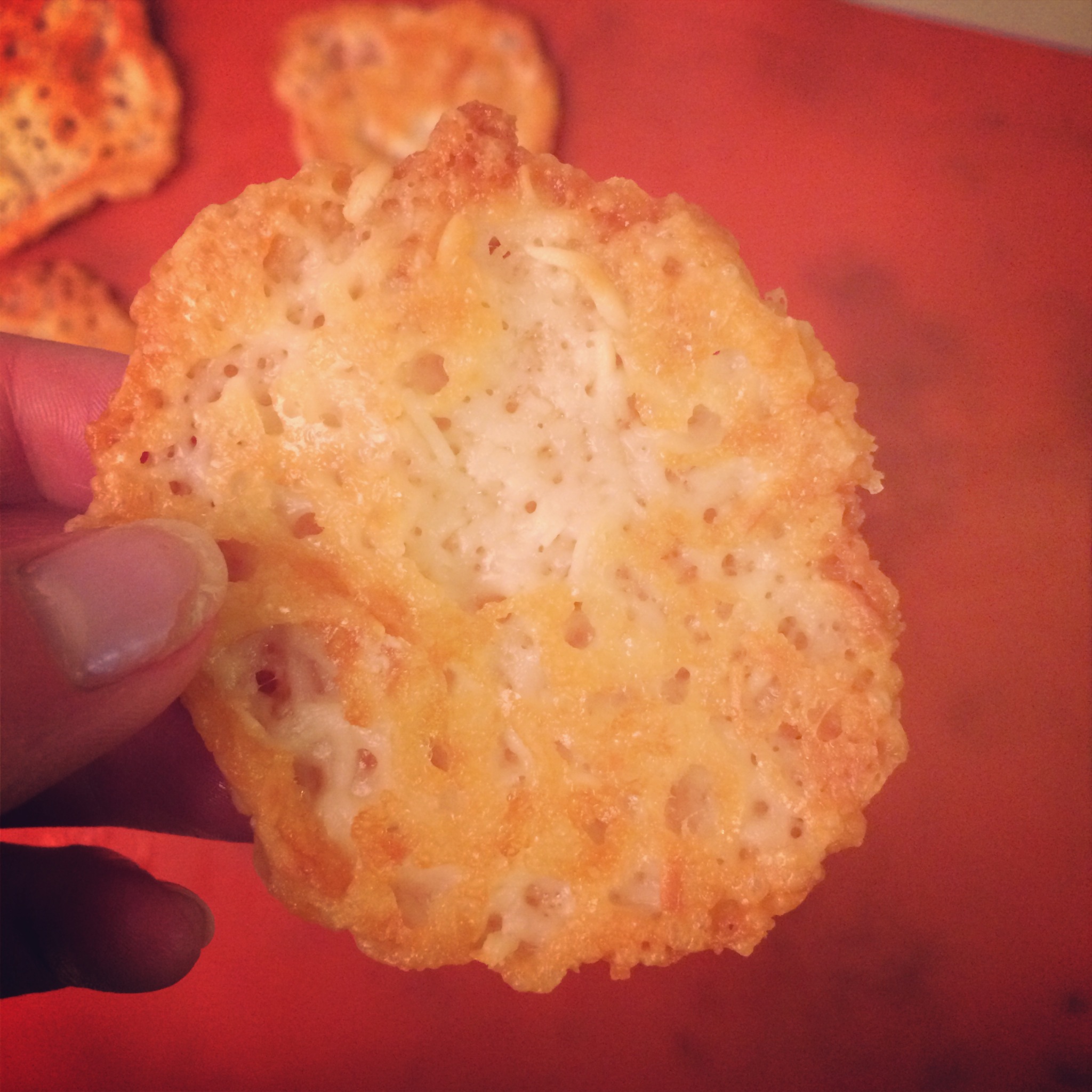 Which basically means melting a little pile of parmesan cheese in a pan until it gets all delicious and crispy. Joey decided the smell of melting parmesan was gross but he is dead wrong because I wanted to bottle that smell and use it as perfume. So delicious.