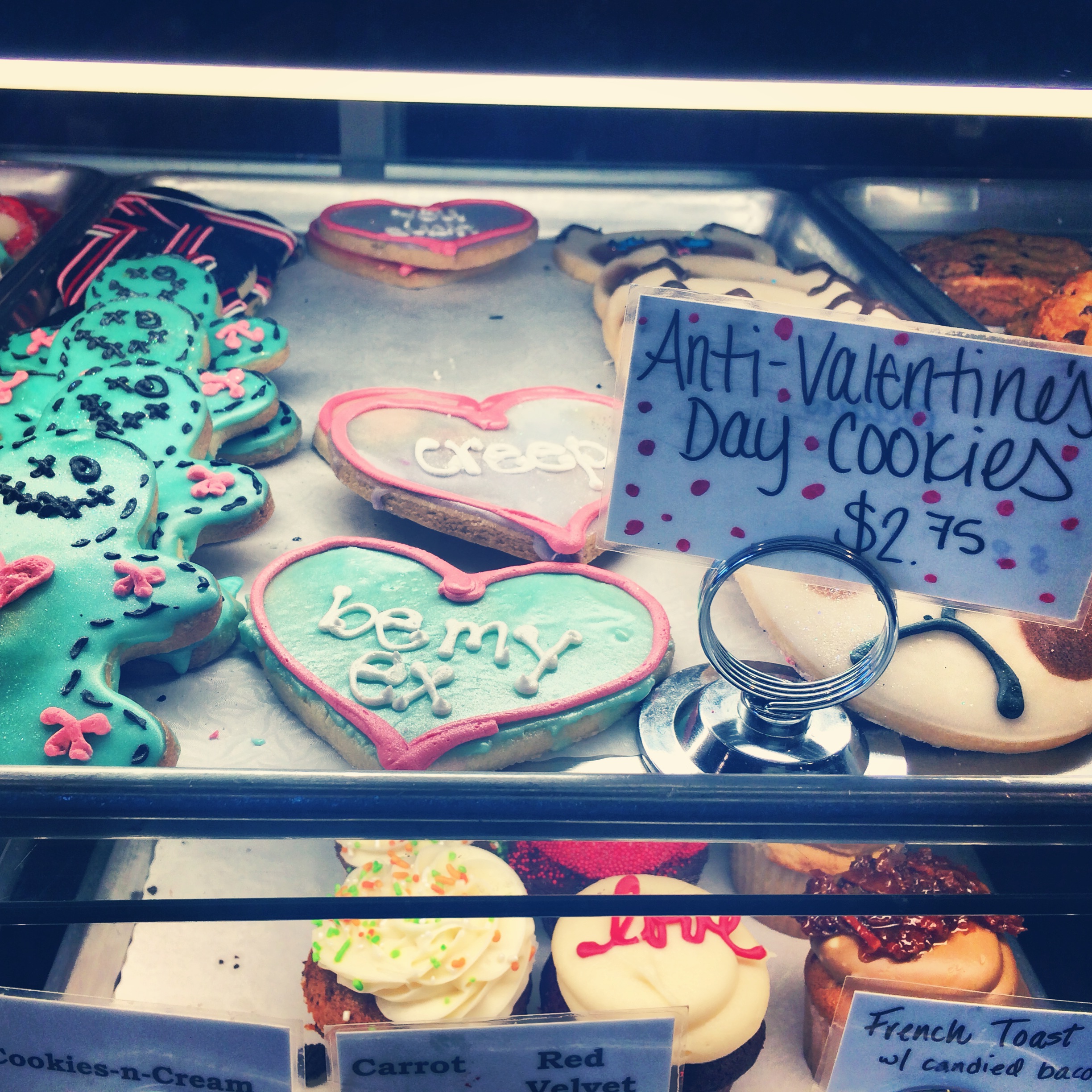 So cake usually isn’t what I consider a nutritionally dense breakfast, but sometimes you have a cake tasting scheduled at 10 AM and sometimes you just roll with it and decide you’ll make up for it by eating a salad later. We had our second cake tasting at a bakery in Lafayette and brought both moms this time around. We still have one more to do next weekend (holy cake tastings, right?), but I can already tell it’s going to be a hard decision. We saw these on our way out and thought they were hilarious.