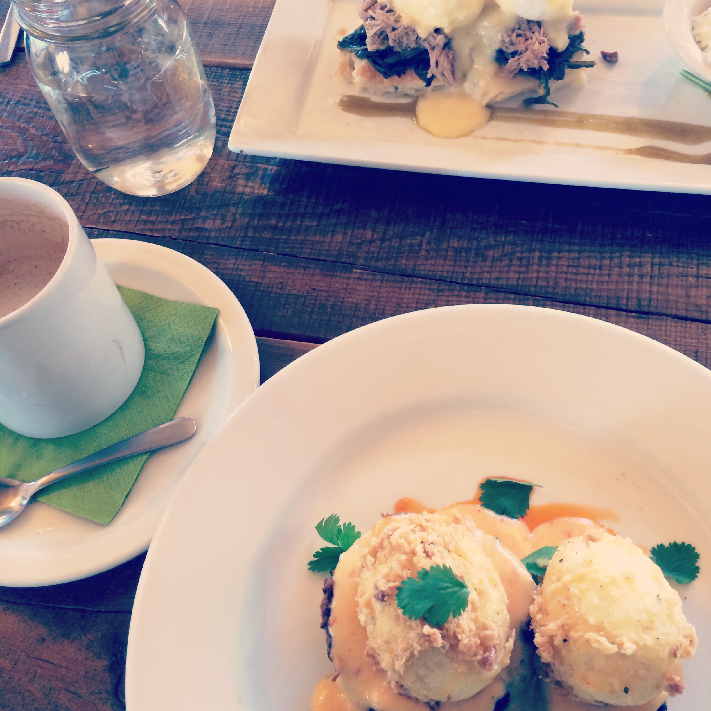 You guys! Chicken fried poached eggs! Over cornbread and buffalo hash with the best hollandaise I’ve ever tasted… and I don’t even like hollandaise! I’ve been dying to go to this tiny little breakfast place called Sassafras that serves up fancified Southern favorites. They actually had a whole section for grits and believe me when I say I had thee hardest time choosing what to order. This dish was killer but I actually think I liked Joey’s “Deep South Benedict” better. Goat cheese jalapeño grits, I die!