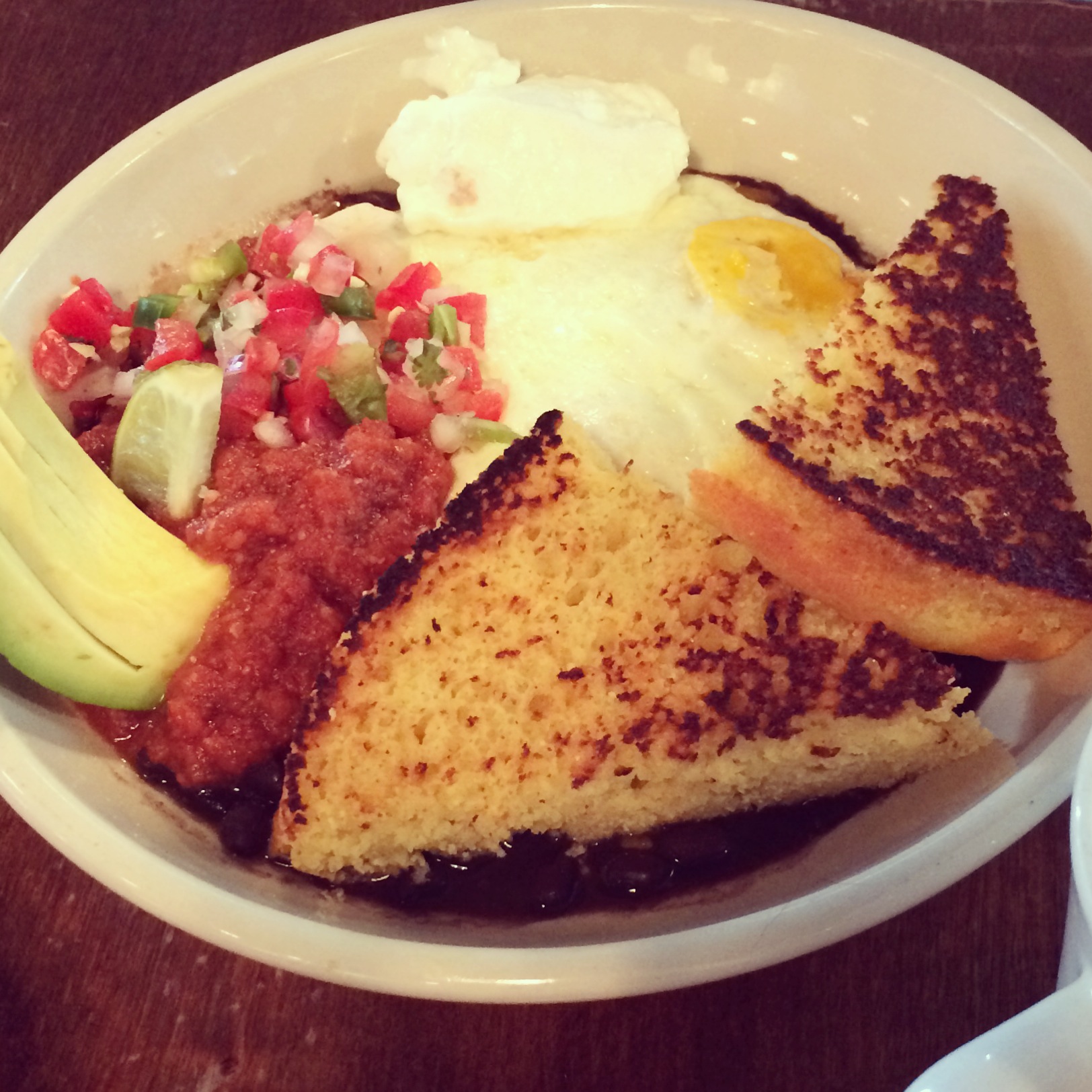 Joey would not stop talking about how good the cornbread part of his cornbread rancheros were.  And he would also not stoping taking coffee refills.  You guys, he’s officially addicted.  I think I’m staging an intervention later this week and you’re all invited.  My scramble was meh and even more meh when I was mid 4-mile run.  So full!