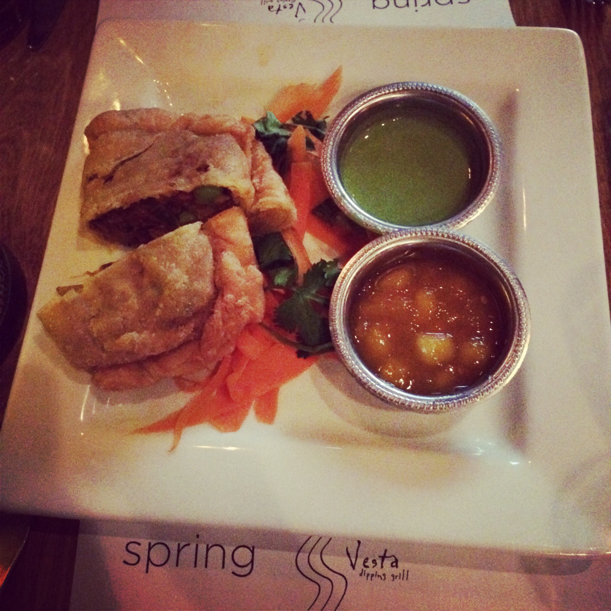 Ahem, in addition to “hacking” my site, there were also flowers, a card that I’m pretty sure was designed just for us and dinner reservations at a surprise location.  Which turned out to be Vesta Dipping Grill.  We’d only been one other time and I was so so excited to be back.  Love that place!