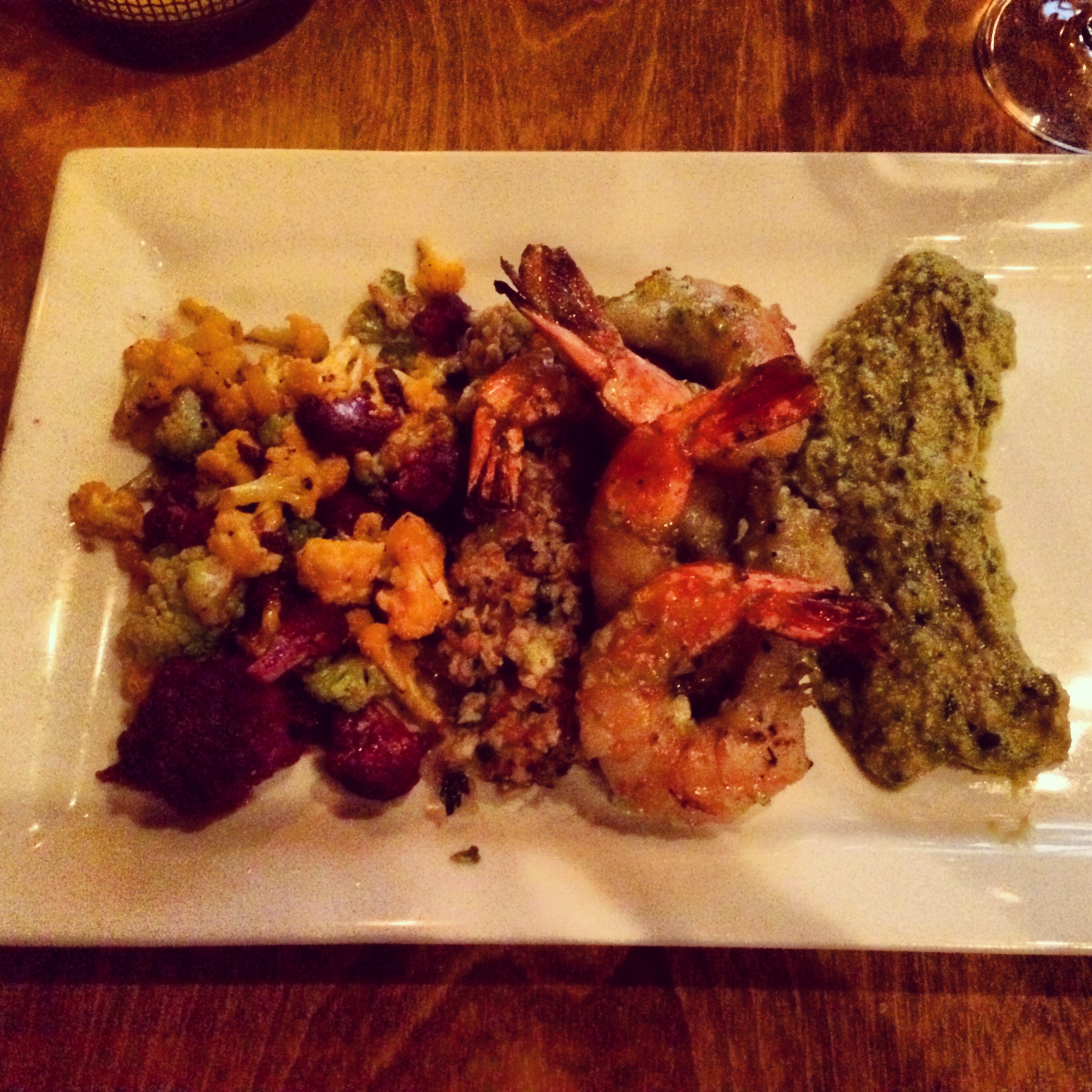 I proceeded to order one of the only items our waiter didn’t point out as a personal or customer favorite, but it turns out this shrimp, roasted cauliflower, tabouleh and harissa hummus dish was amazing!  Viva la jumbo shrimp!  Is it weird that despite all the deliciousness on the plate, my favorite part was the roasted cauliflower?  Flavor explosion!
