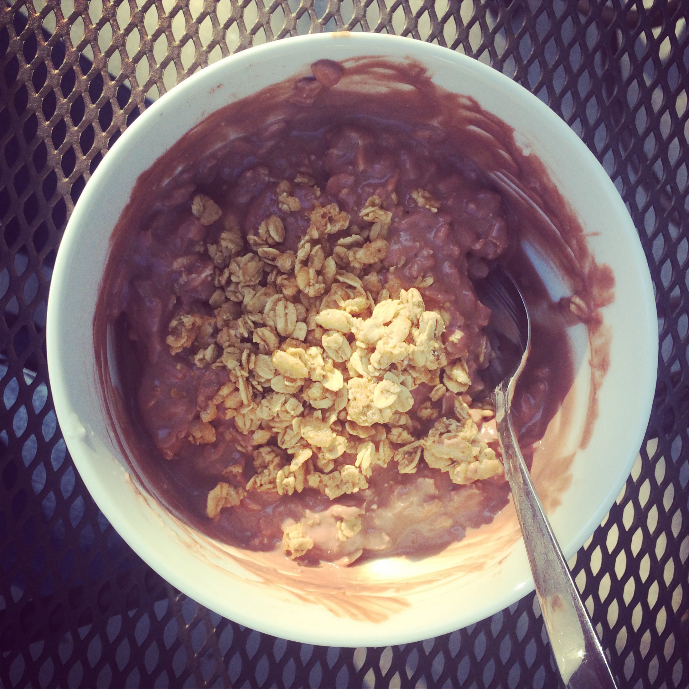I went on a run last Saturday and had this plan to follow it up with a green smoothie for breakfast and then I got home and Joey told me he was going out to pick us up iced coffee and pastries.  He’s a bad influence 😛
