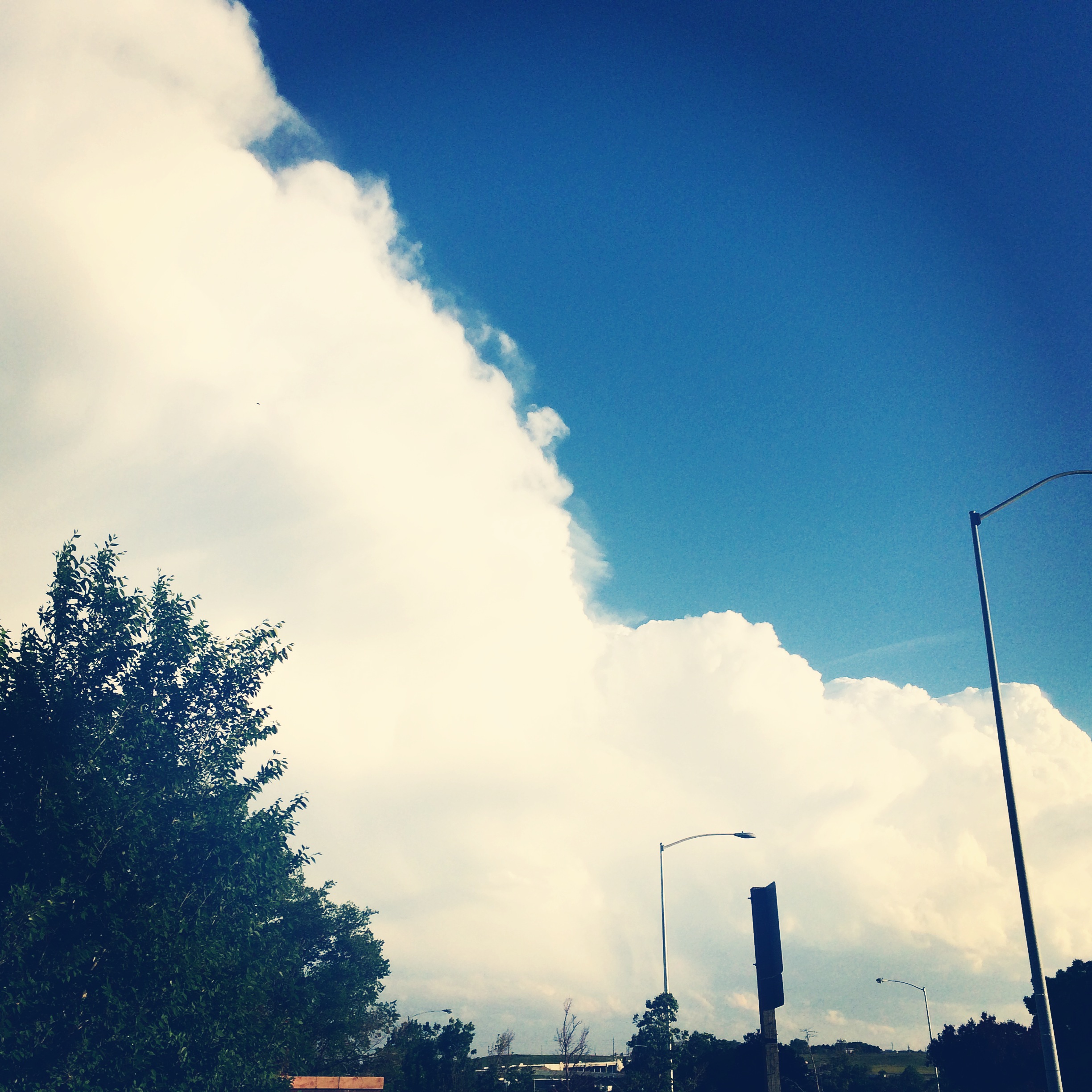 We had the coolest clouds last week.  Can you spot the tiny moon?
