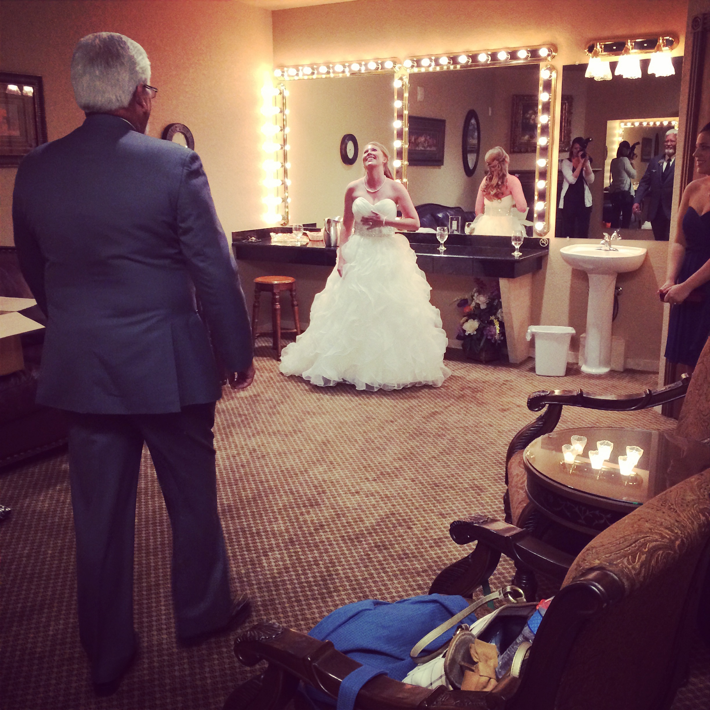 This was Hannah’s dad Tim seeing her for the first time that day. I took this picture and then had to excuse myself from the room. Karla, Kellee and I had instant tears and it was a little too much to handle. We were out that door so fast! I just had to remind myself how long it had just taken Jake to get all the make up on my face.