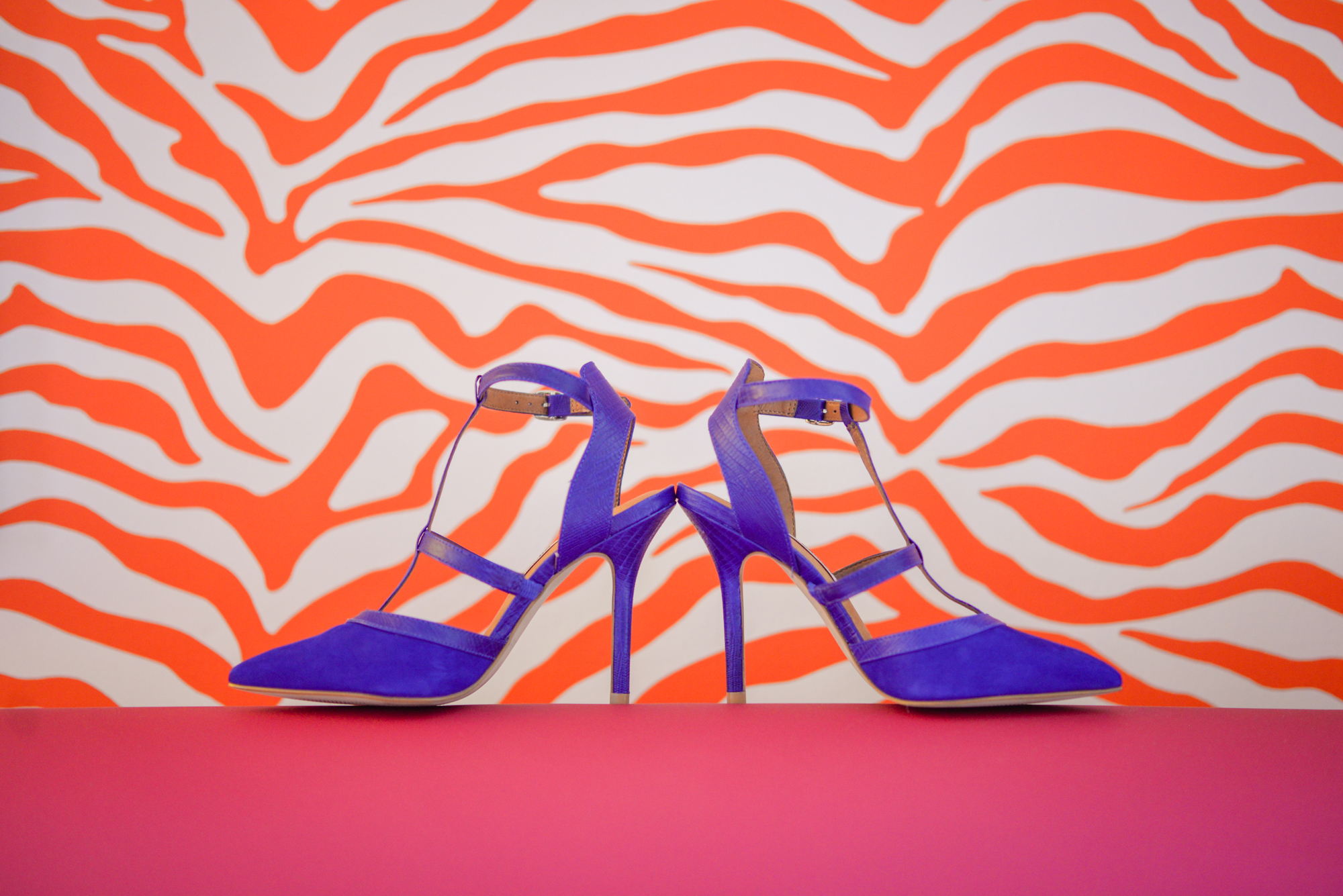 This was my first pair of wedding day shoes — after the ceremony I changed into some much more comfortable, but just as high wedges — and how cool do they look against the other bright colors in the room?!