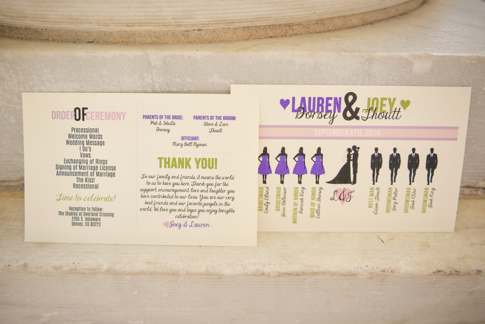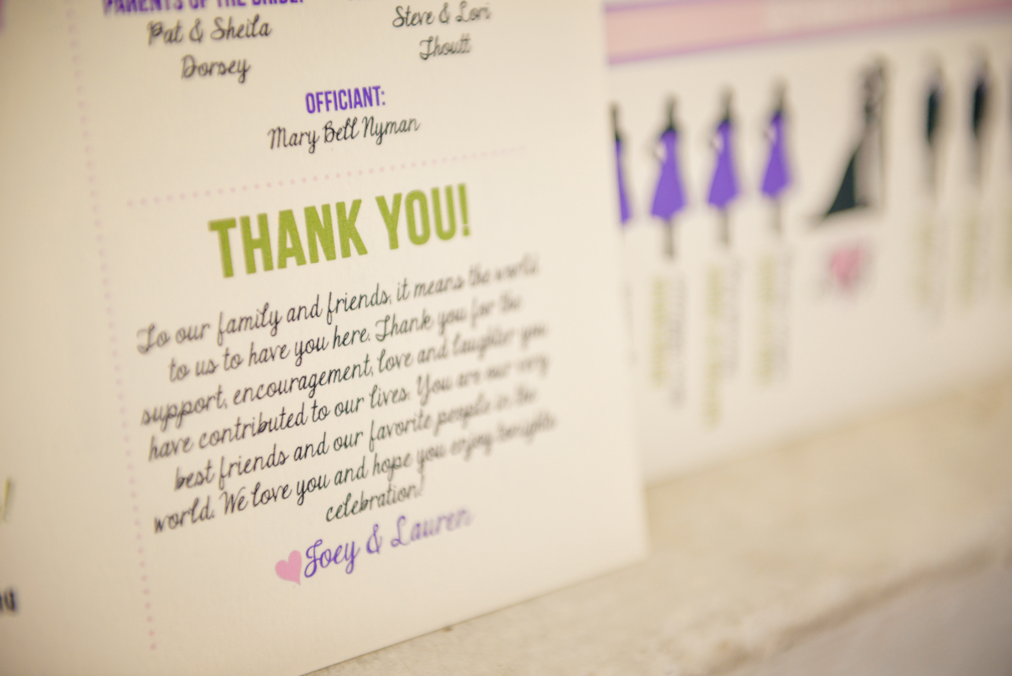I so badly wanted wedding programs but we kinda exhausted our stationary budget on invitations (which I totally meant to bring so we could have a professional photo of all the pieces and we both forgot…) so we went the Etsy route. Basically, there are a bunch of templates you can choose from then the designer can customize the colors, graphics and text. They send the file and you can print them yourself. The graphic designer we chose we such a sweetheart and I loved how the programs turned out!
