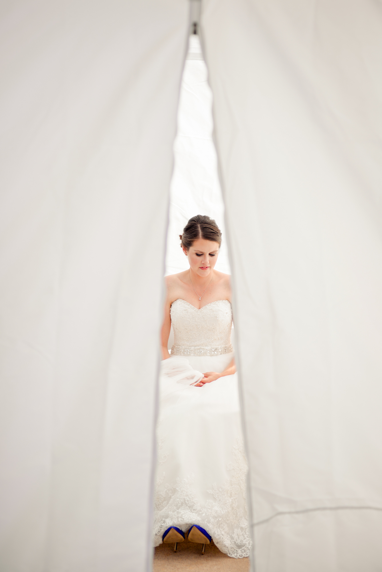 We had Joey’s aunt and uncle set up a couple of tents for the wedding party, but I was the first one to arrive so this is me hanging out in the girls tent by myself 🙂 Also, it ended up being sweltering inside those tents. Why didn’t we think of that before?