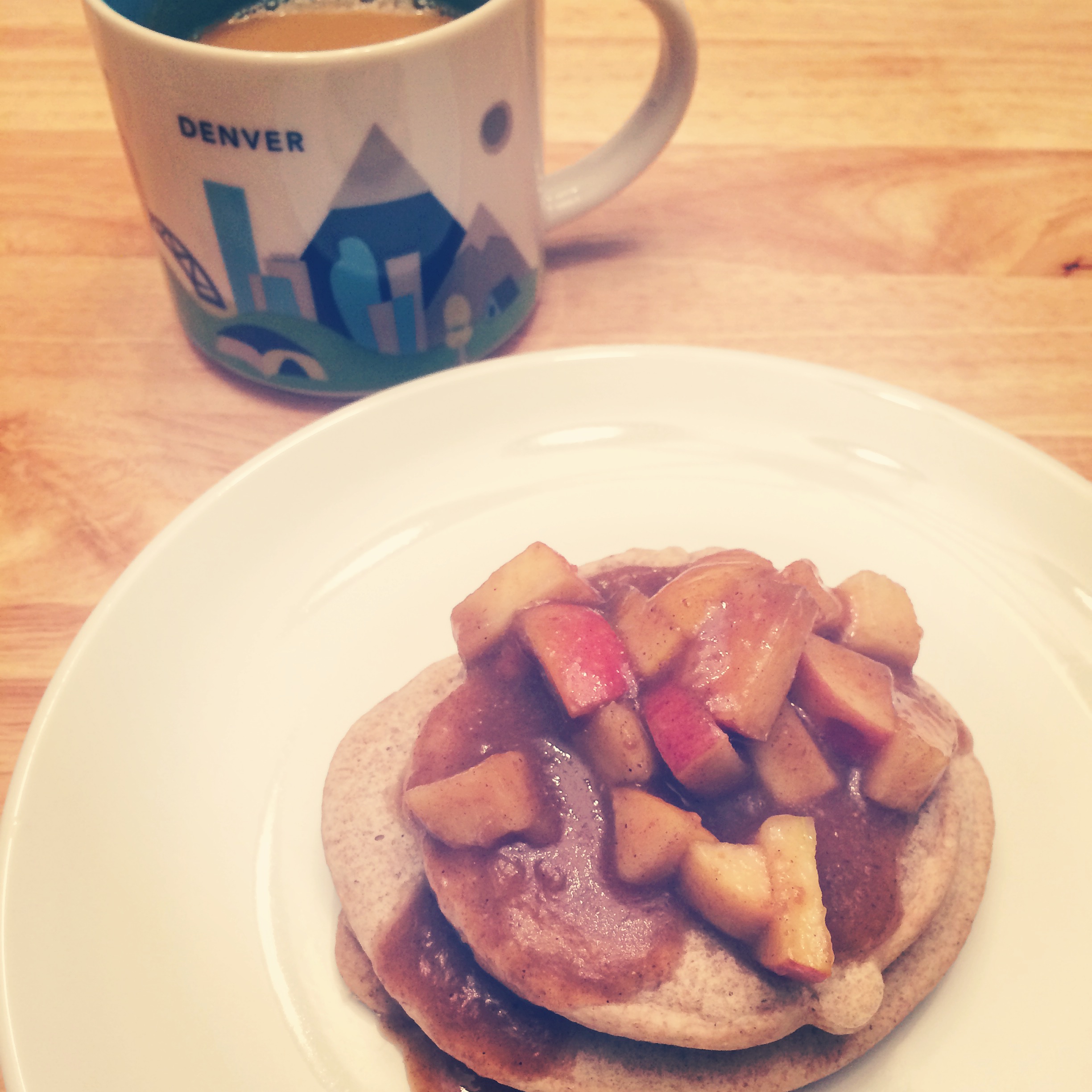 Saturday started with some sleep in action (for me at least…) followed by homemade Pumpkin Spice Lattes and pancakes topped with those apples I was talking about.  There’s a coffee shop nearby that makes their own pumpkin spice syrup (with REAL pumpkin!) that we originally planned on going to but my aforementioned sleep in set us back so homemade (still with real pumpkin!) it was.  A bit sweet but otherwise delicious!