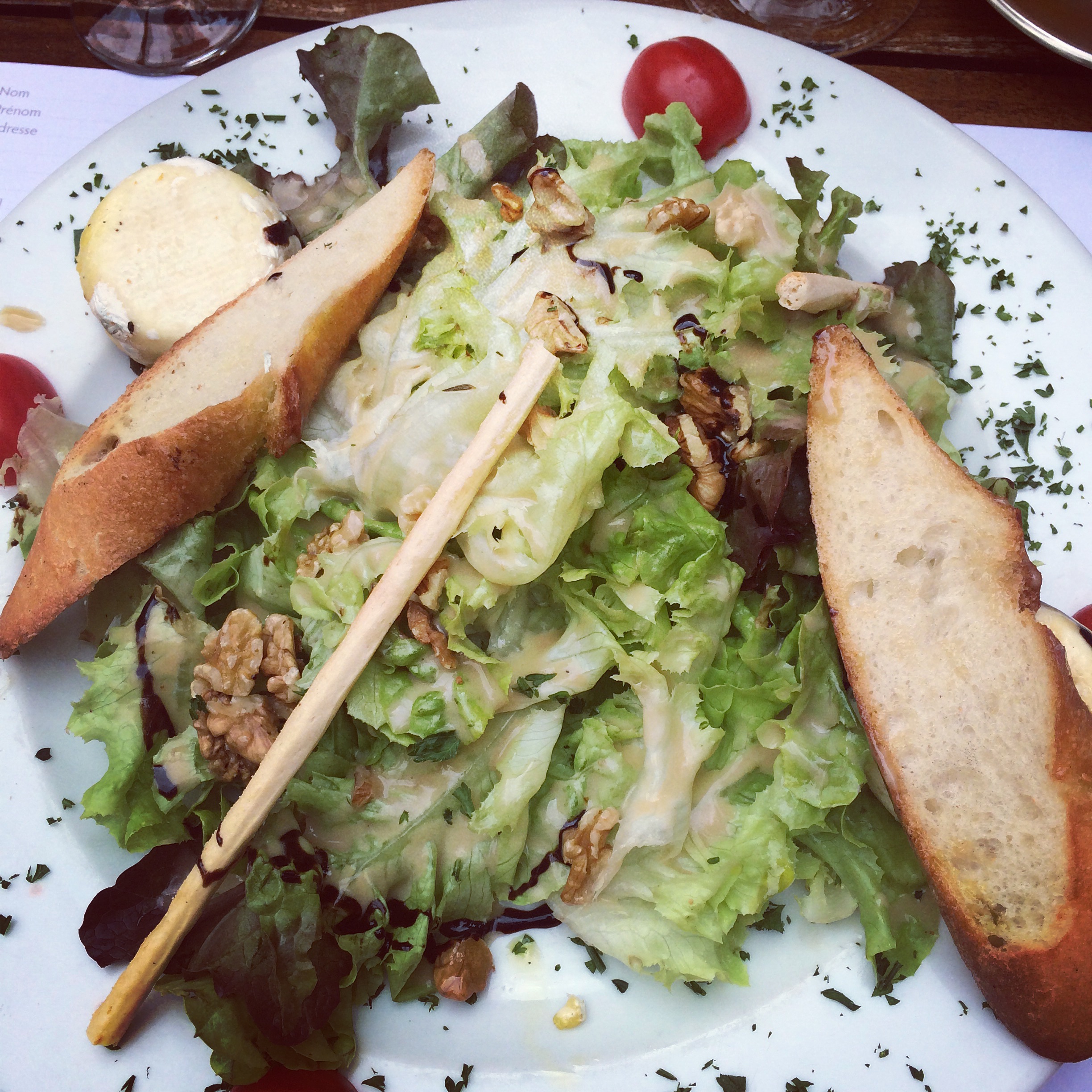 Vaison la Romaine is made up of the lower city and the upper city. Our hotel was at the base of the upper city and had the most awesome view of all the cute houses and vineyards below. The first thing we did after we checked in was… EAT! Duh 🙂 There was a little town square in the lower city, with a row of restaurants so we grabbed ourselves some lunch. France knows how to do salads right!