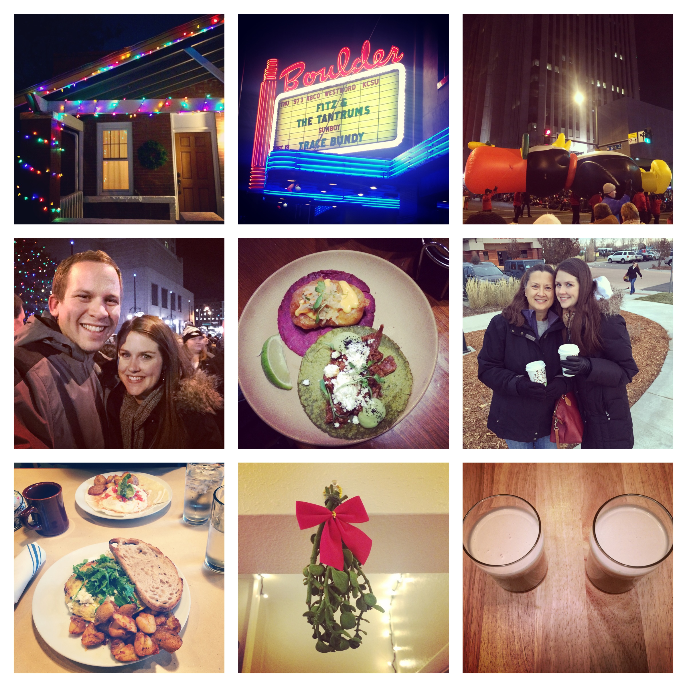 Christmas Light Happiness / Fitz & the Tantrums in Boulder / Major Waddles Limbo / Parade of Lights / Shark Taco / Studio C with Mom / Post-Studio C Sustenance / Mistletoe / Nog!