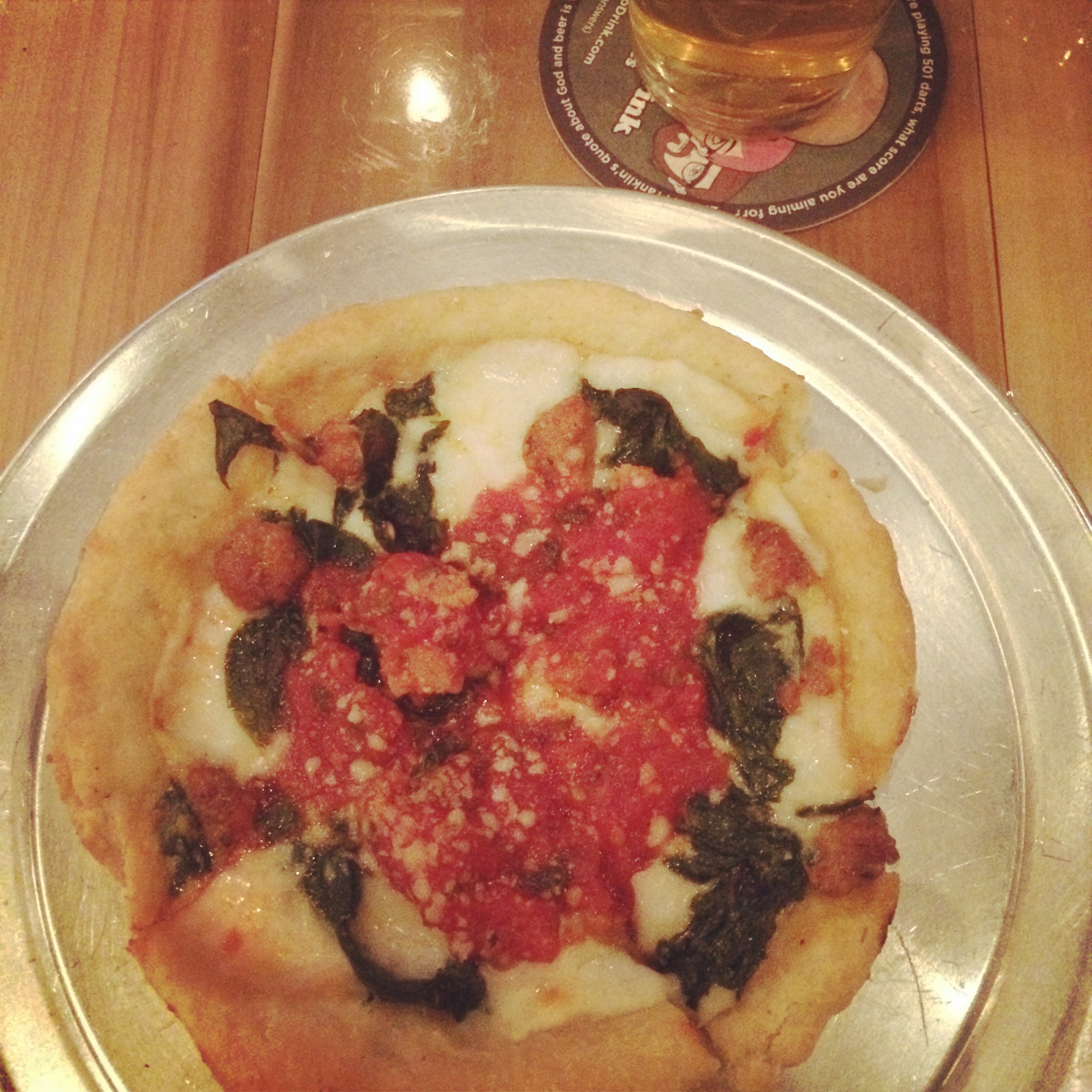 Anyway, in other weekend news, we finally got to try the new deep dish pizza place in our hood. And we walked there. Seriously, it’s that close and it was that nice outside. In January! I’m not complaining.