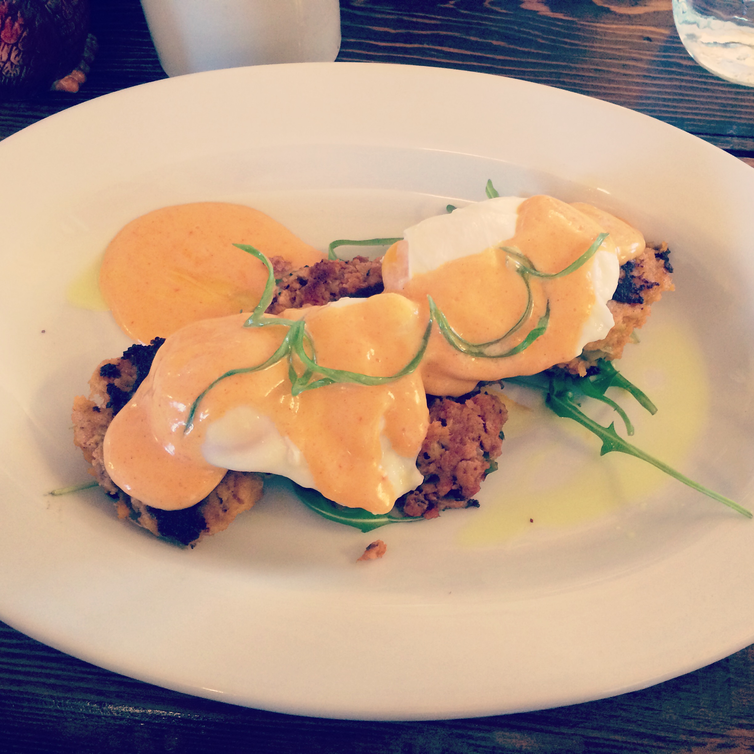 So we needed to get the backsplash finished on Sunday before our wet saw rental time was up, but first… breakfast! We took my parents to Sassafras. We’d only been once last year and had been dying to go back. We had a short wait — where I could not seem to find an out of the way place to stand — but it was all worth it. Because… hollandaise! I got the Cajun Benedict and it was pretty phenomenal. We definitely need to come to this place more often.
