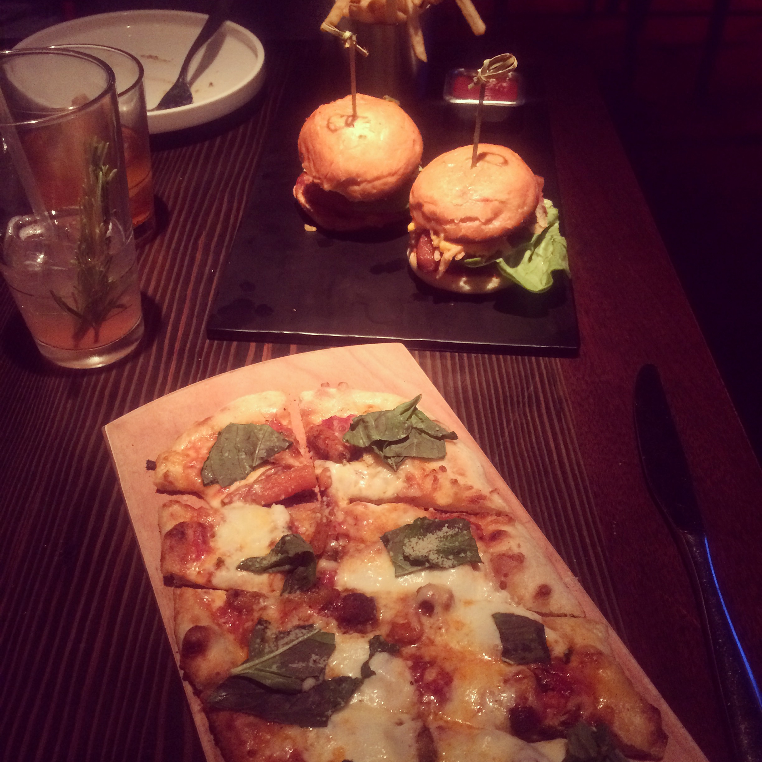 For the main event, we split the Wagyu Beef Sliders and the Bolognese, Mozzarella, Roasted Carrots & Basil Flatbread.  We both thought the beef sliders were just okay.  I actually compared them to White Castle sliders which might be good and might be bad depending on who you are 😛  But I did love the flatbread.  Who knew roasted carrots went so well on a pizza?