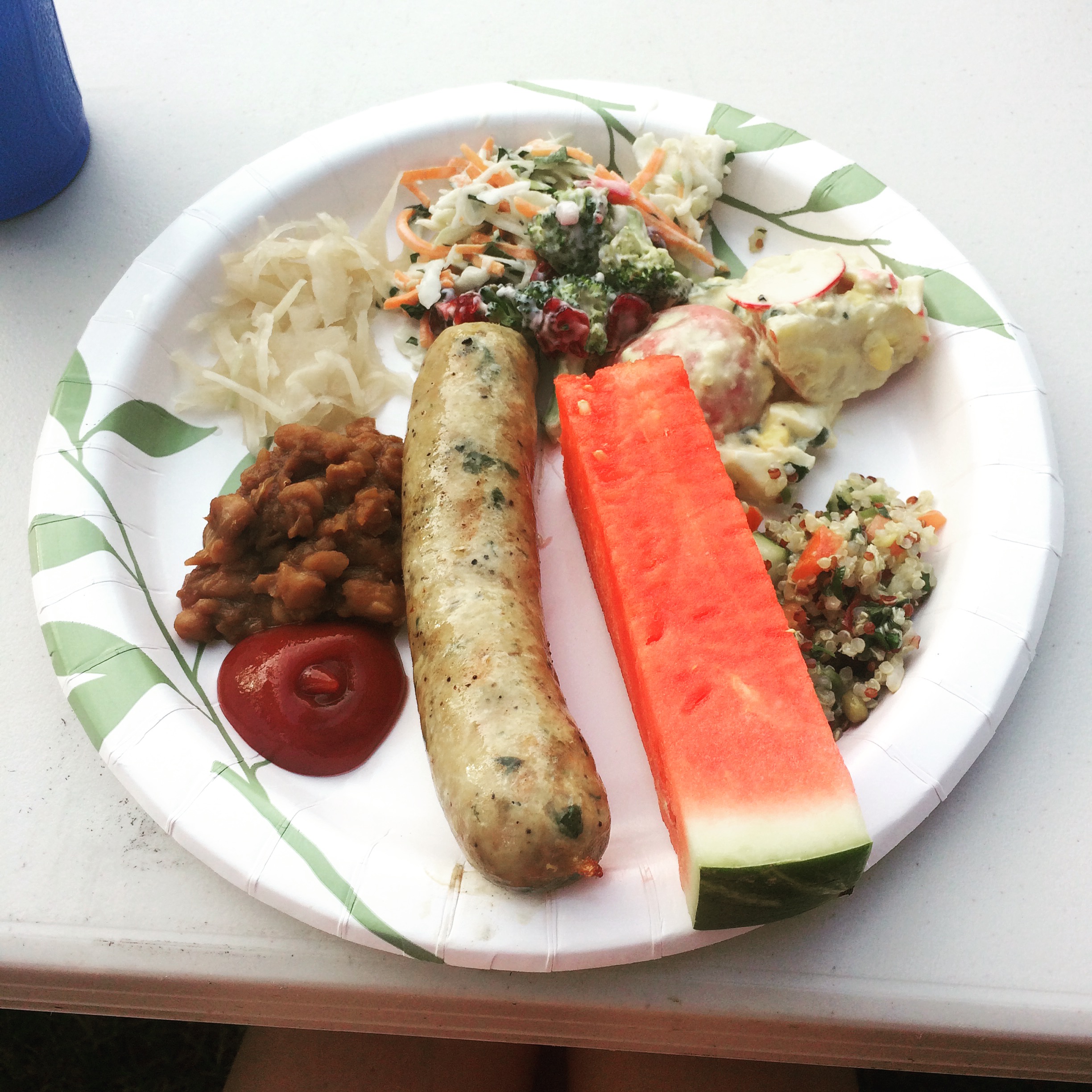We brewed a “knockoff Blue Moon,” hauled the kegerator outside, mixed up some sangria, cut a watermelon and cooked some baked beans for the occasion. We also grilled burgers and brats and may or may not have run out of propane mid-BBQ. We definitely knew better than to not refill the propane tank. Joey claims I drank that entire pitcher of sangria by myself. All I know is I had a wine flush like whoa.