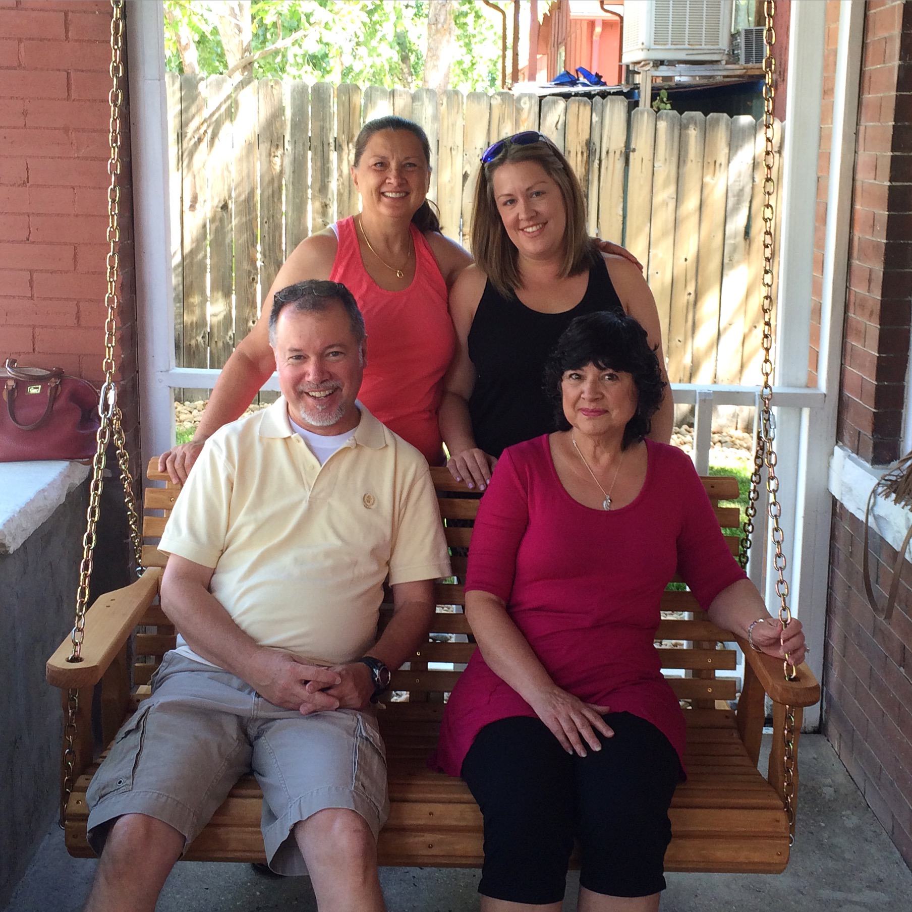 My mom’s actual birthday was yesterday so everyone met at my house at 10 AM, then present unwrapping — Bean, Joey and I got her a gift card to the Denver Performing Arts Center and a Le Creuset cast-iron skillet — and family photo-taking ensued. I’d like to point out that all four of those people are the exact same height. Okay and maybe I’m that exact same height too… P.S. Please note my new porch swing which I believe officially got approved by the whole group. I LOVE IT.