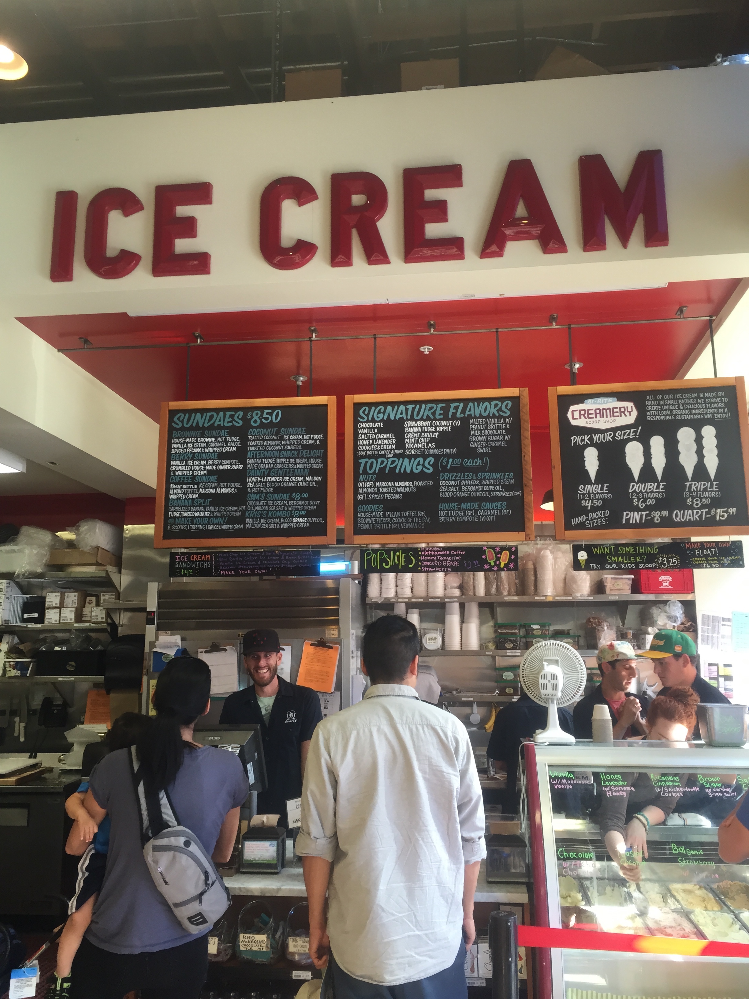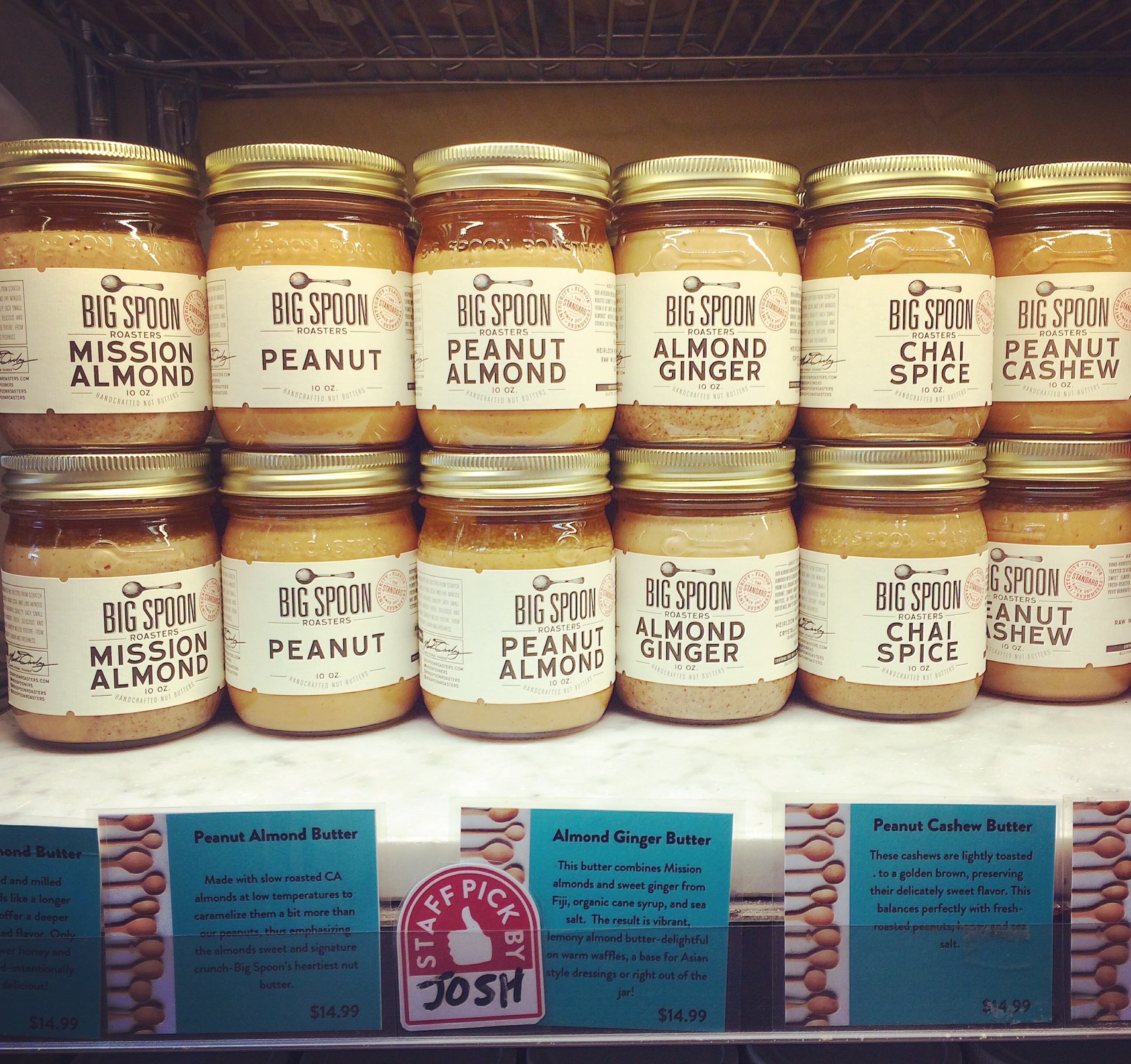 We noticed some people in line for coffee holding ice cream cones so we obviously had to go find where they were getting it.  Turns out Bi-Rite Creamery was just down the street.  Joey got in line for ice cream while I wandered around the Bi-Rite Market.  I’m still kicking myself for not buying one of these peanut/almond butters.  Also, they misunderstood Joey when he ordered his ice cream so he ended up with a second cup that I had to help him with.  Oh darn…