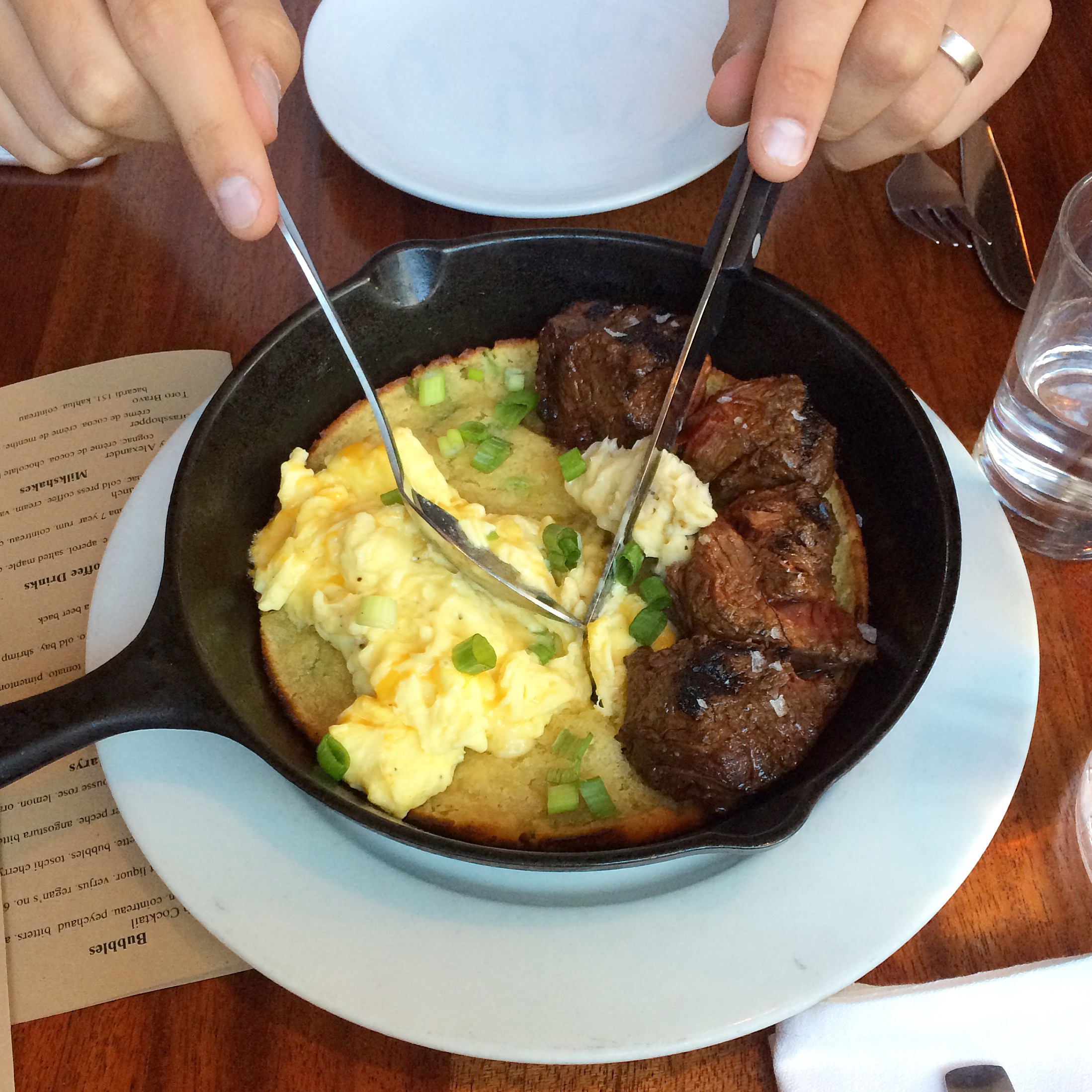 IMG_9642The next morning, we walked to get iced coffee at Blend, then packed up and headed out for one last meal in Portland.  I was kind of hesitant to go to Tasty N Alder because share plates for breakfast sounds kind of weird to me, but I am SO GLAD we went.  It was amazing!  We shared an order of donuts (yes, more donuts!) and the steak and eggs and I was blown away by both dishes.  We ate a lot of good things on this vacation, but that steak and eggs skillet was definitely one of the best.
