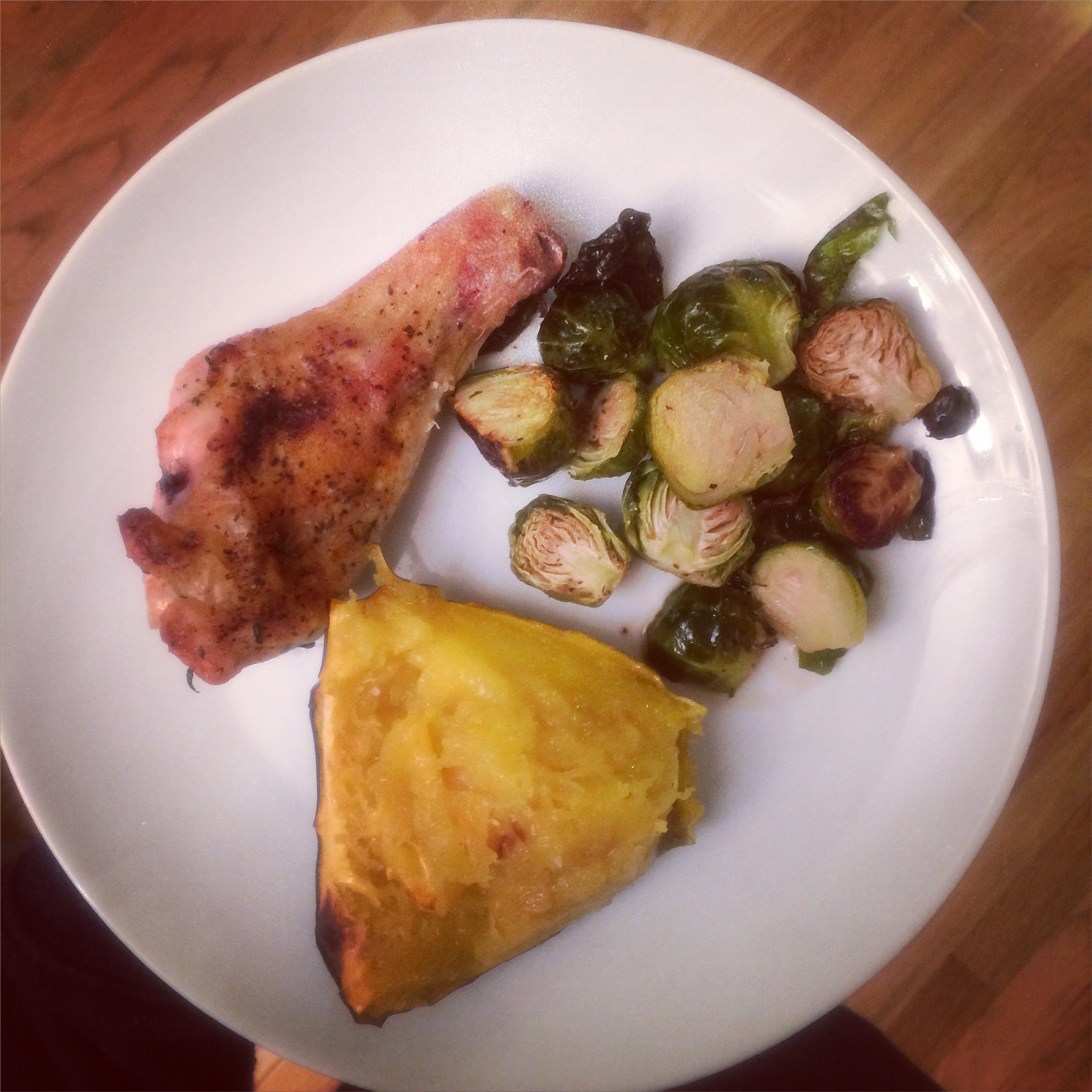 I made this again, except I swapped out the carrots and potatoes for Brussels sprouts and OH MY GOSH, SO GOOD. I cut up a whole chicken by myself and part of me was thinking “this is so gross!” and the other part of me was thinking “thank you, chicken, for giving up your life for my dinner.” It was a weird mix of emotions. Oh and I made this acorn squash on the side and it was the best. But seriously, get your hands on this chicken recipe ASAP, because it’s life changing.