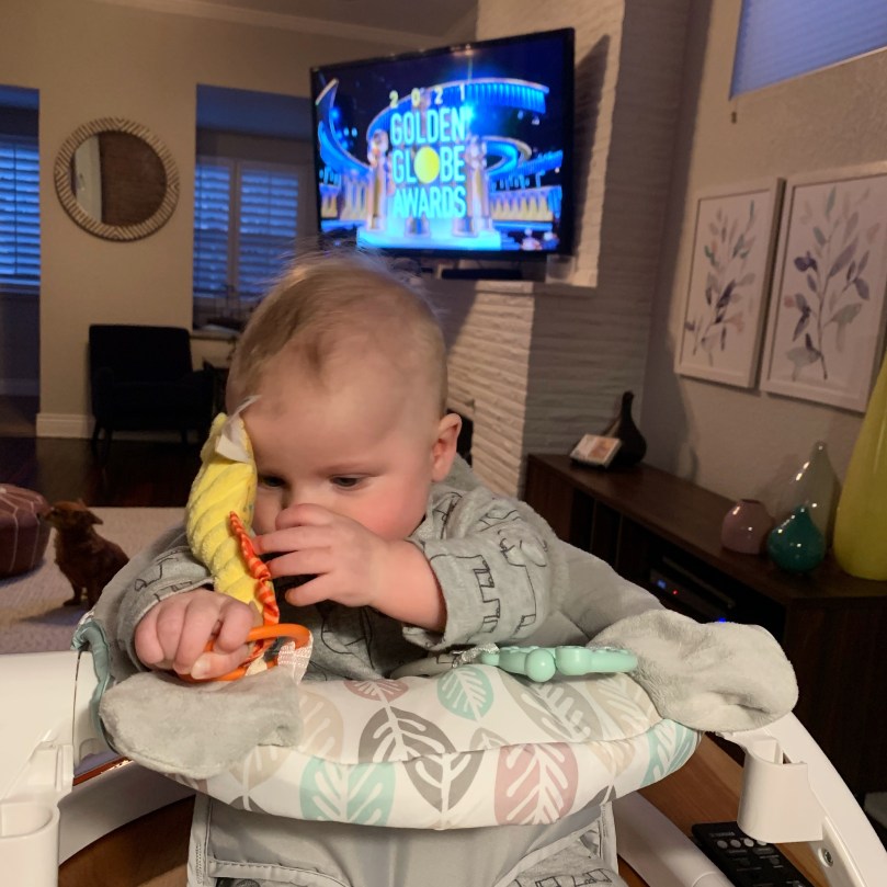 Our pediatrician gave us the okay to get a floor seat for Dempsey, so we picked one out at Target then headed over to pick it up. It was my first time experiencing the Target drive up — Joey has been making use of it about once a week! — and I think it took all of 30 seconds, so I was impressed! Back at home, Dempsey was subjected to kisses and selfies and then I did a quick treadmill work out, while Joey set up his chair. He seems to enjoy it!