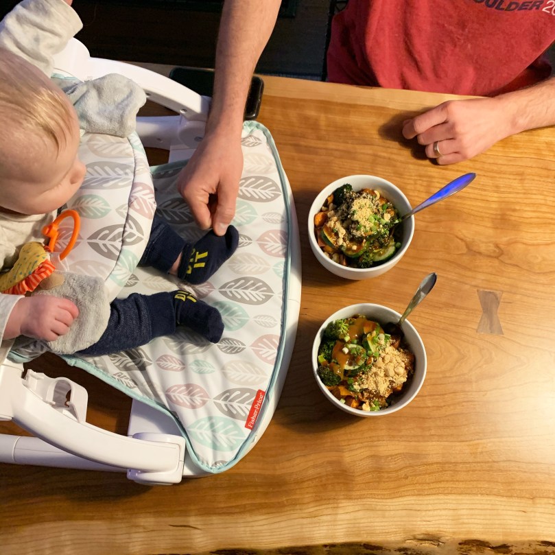 Before I got pregnant, I thought I had a pretty healthy relationship to food but being pregnant forced me to confront some things and maybe realize I wasn’t fully there. I’m not saying I have it all figured out now but I had been living my life around some rules that I didn’t even realize were there. Weird thoughts about how often I ate out or how often I ate meat or when I drank alcohol or had dessert were still in my mind and I’d been doing that for so long that it felt normal. I’ve literally thrown out all of those rules and it feels so much better, so much easier, so much happier. Beer on a Tuesday? Yes! Talking myself out of dessert? Never! Probably helps to have a tiny human around, observing and eventually mimicking our food habits but damn, feels good to be in this place. I want to stay here forever!