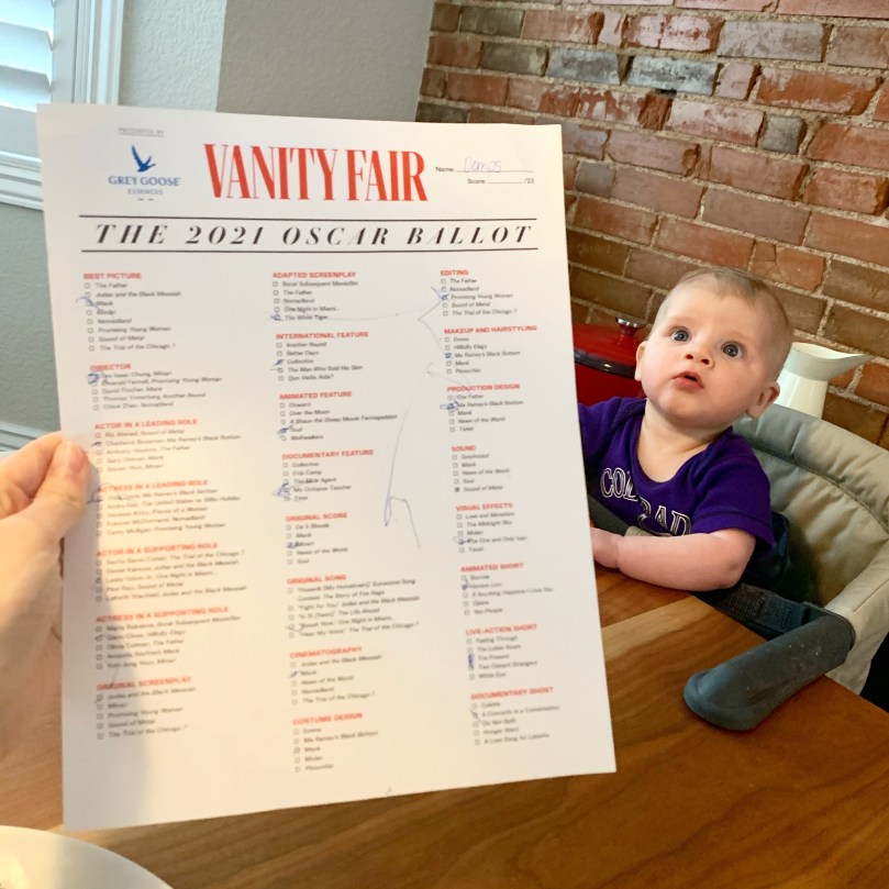 Good morning and what the hell happened at the end of those Oscars??? It had already been a mix of wonderful moments and strange production choices when Rita Moreno came out to announce… BEST PICTURE?? With twenty minutes left in the broadcast?? We could have ended with Chloé Zhao’s speech and Frances McDormand howling, but instead we ended with an Anthony Hopkins headshot and welp, good night! I do not understand. Anyway, this weekend started out very rocky with Joey basically down for the count post-second dose but then Earl Gray waffles, great grandparent time for Dempsey, a super fun Rockies game and “Da Butt,” so I can’t complain about it all 🙂