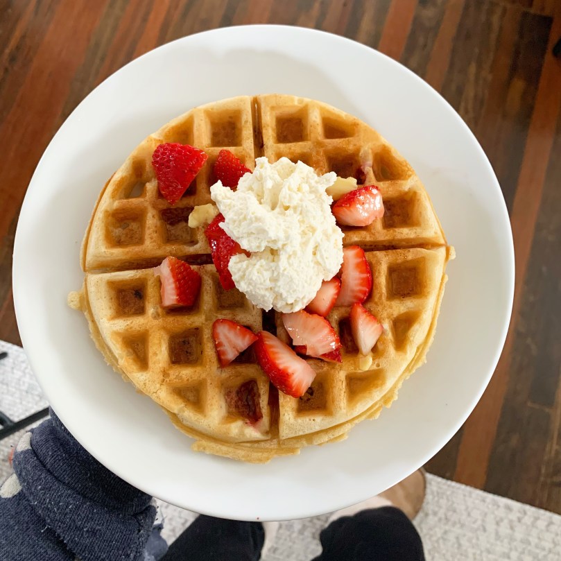 Do you even see that curlicue?? It’s my absolute favorite! We had leftover whipped cream from Mother’s Day and I told Joey I wanted a strawberry waffle to put it on, so he found a recipe and made them for us π₯°