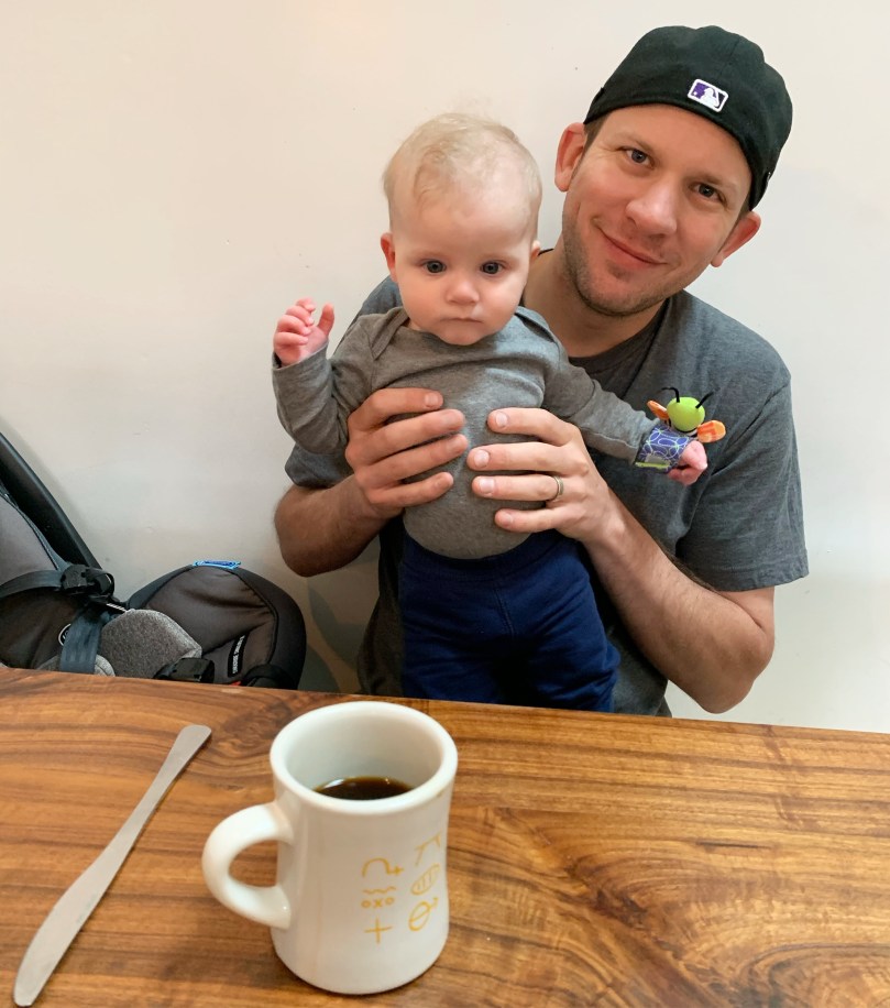 Please enjoy this edition of “Dempsey Goes to Stowaway” π We ordered a donut as soon as we got seated and then… it just never came out… I love Stowaway, but sometimes that place drives me insane. They eventually boxed one up and gave it to us with our check. Anyway, baby smiles and that mushroom-polenta-romesco-egg dish made up for it.