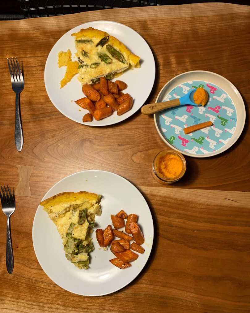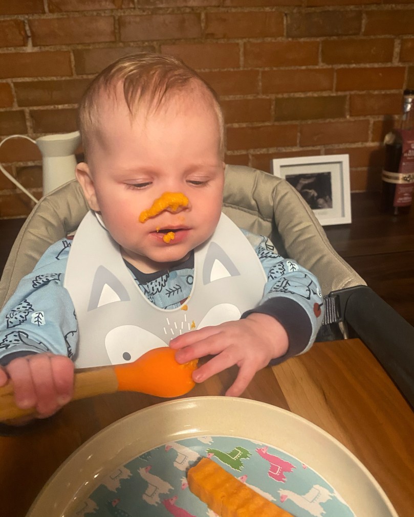 First, just a small blurb on baby feeding, which started last Monday! We were totally set on the baby-led weaning approach and then my pediatrician was really pushing the more traditional purée method and it made me second guess myself, so now we are doing a hybrid? I don’t really know if that’s a thing, but we’re making it one! We’ve been giving him both a pre-loaded spoon of puree to feed himself with — his aim could still use a bit of work, as evidenced by that third picture 😂 — and a little slice of that same food. He did okay with the sweet potato but avocado and carrot were a big hit! Also, please file this under “thing I said I’d never do before I had a baby” because I’ve always found messy food photos so gross and yet, here we are…