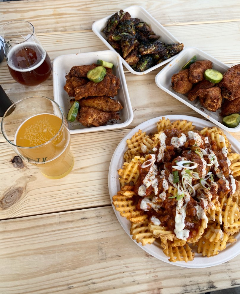 Such a feel good Friday. Warm weather and sunny skies finally! We couldn’t help but take ourselves out to a brewery. Dempsey was being the absolute cutest posing for all my pictures and only sort of wanted Dad’s beer 😂 Also, we’d never been to Zuni Street Brewing, but it’s huge! An indoor area plus both a back and a front patio! We also grabbed food from the J Street food truck, which all happened to be Cajun-themed. I try to steer clear of any po boys when I’m not in New Orleans for fear of being disappointed and though those wings were kind of dry, everything else was really really good!