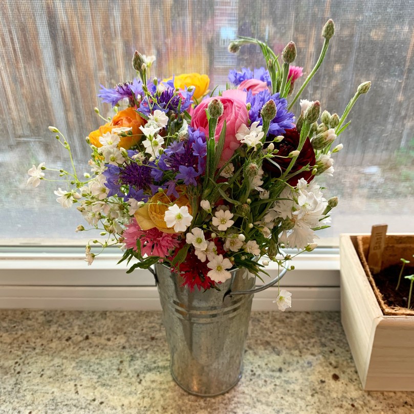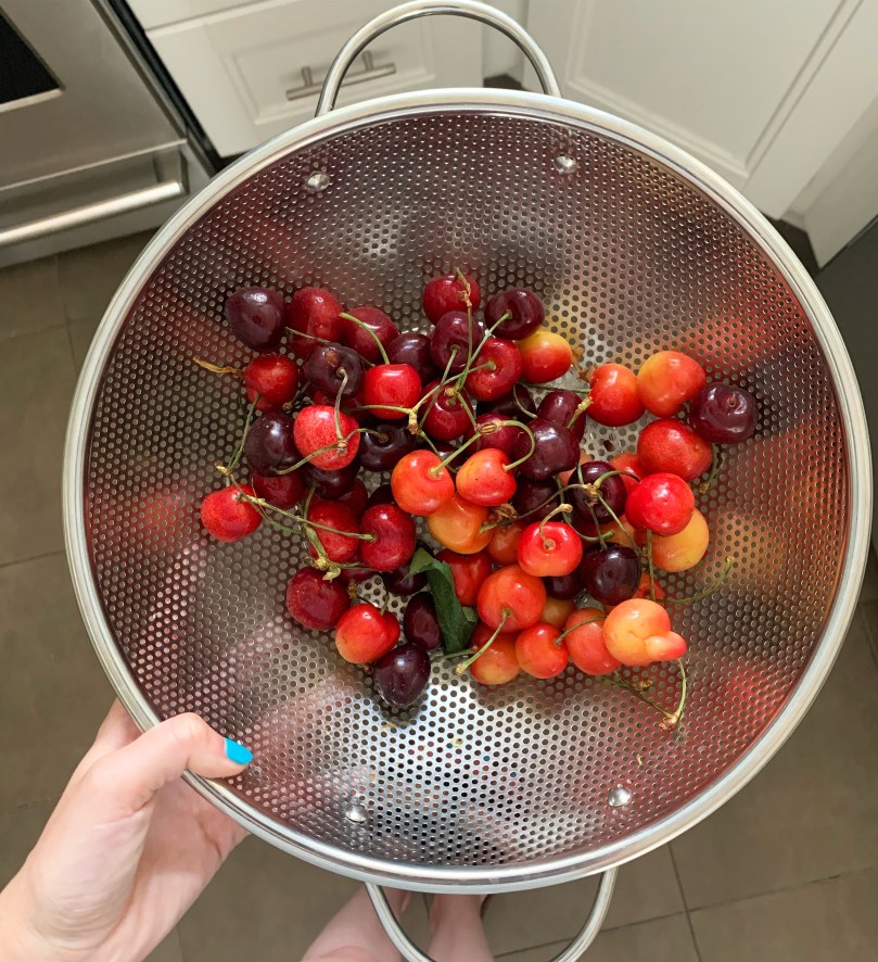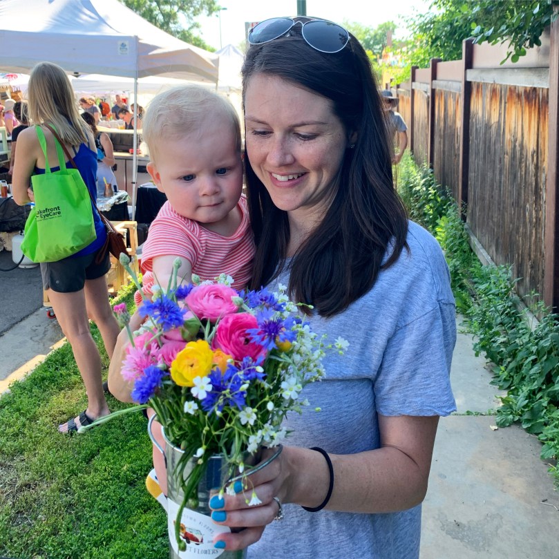 Sunday was such a good day and we needed it! Dempsey slept till 8!!! Unheard of. It actually worked out perfect because we had wanted to hit the Highlands Farmers’ Market and it didn’t start until 9, which normally would’ve interfered with Nap #1 but didn’t! We walked over and it was already BUSTLING! And hot! After being so disappointed by the Union Station FM, I was pleasantly surprised by this one. Lots of produce, including CHERRIES! And I saw the tent I usually get peaches from later in the summer!!! We grabbed coffee at Novo, breakfast to go from the Basted Egg food truck, the cutest vase of flowers, aforementioned cherries and walked back home. Saw the most amazing front yard on our way back too! Joey put the baby down for his nap and then we ate breakfast and it was really really good!