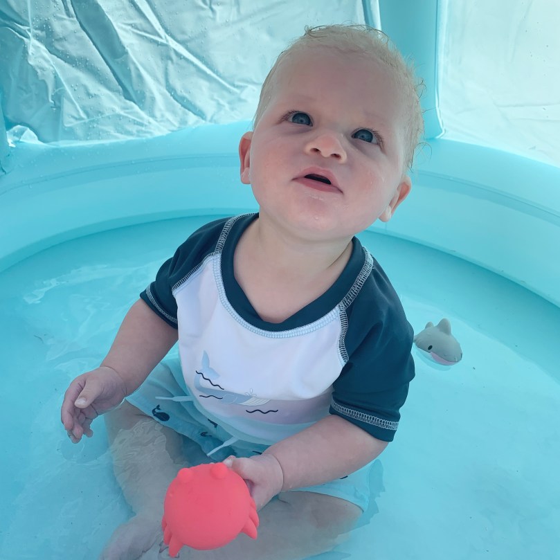 Pool time for Dempsey! Not sure he cared about the water, but he did like the toys 😍