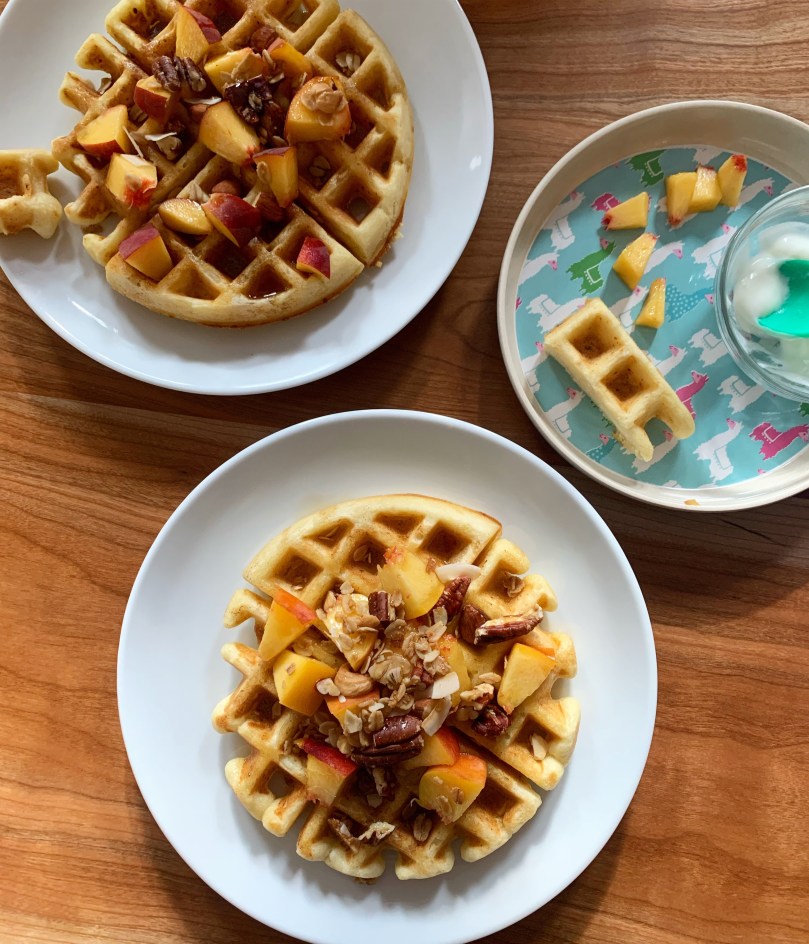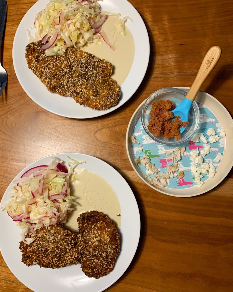Dempsey’s first waffle! It’s been so so fun to all eat (basically) the same thing for breakfast these days. When I make pancakes/waffles/French toast, I usually just make his first sans sugar, then mix in it for our version. He was clearly into it 😂 We had to wake that poor baby up from his morning nap, because we were headed into Loveland for a family reunion! We got Dempsey’s name from Joey’s grandma’s side of the family, so we wanted to be able to bring him to meet all the family who knew the original Dempsey ❤ He was such a good little boy and was eating everything we put in front of him for lunch. Grabbed a photo of Demps, Dave and Nee before heading out and though we thought he would fall asleep in the car on the way home, he did not. We made some chicken cutlets for dinner, then put Dempsey to bed and watched the Olympics. I maybe fell asleep on the couch 😂