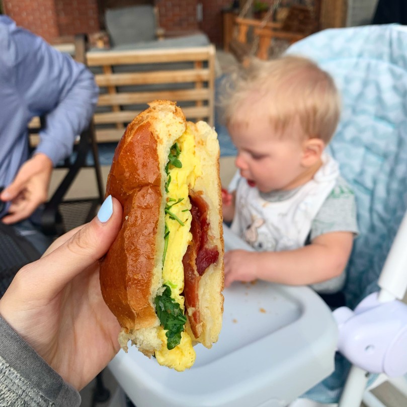 Last week, I had made us a Sunday morning breakfast reservation at Stowaway but then Saturday night rolled around and I wasn’t feeling it, so we cancelled. Which meant getting to go on a morning run around the lake and then Joey picked up sandwiches from Wooden Spoon for us! A cute little boy was enjoying strawberries and waffle in the background. Not going to lie, I was kind of in a funk all day and I’m not sure why βΉ I’ve always got a smile for my son though, even when he is standing up in his crib instead of napping or pulling my headband over my eyes π