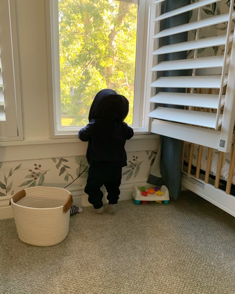 A Sunday with no plans ❤ We debated ordering in for breakfast but nothing was sounding like THE THING, so I made us soft scrambled eggs instead. Joey made some hash browns for he and Dempsey and all our plates were just a little bit different and I love that! Afterward, we hung outside and then while Dempsey was napping, Joey and I chilled inside and looked over out calendar for October. That little boy is going to be ONE real soon and I cannot believe it!!!! After he was up, we headed to Ace (we’ve been practicing wagging our finger at the dog and saying “no, no, puppy,” so he was wagging his finger at all the employees 😂🥺) for paint and then Joey picked up lunch for us. I told Joey I wasn’t that hungry, then naturally ordered a double decker fried chicken sandwich and fries 😂 Dempsey helped put up some Halloween decorations in his room and he was so proud of his own work 😍